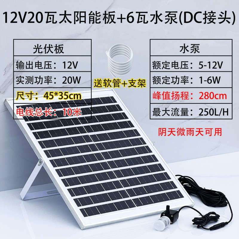 • 12V 20와트 패널 + 6와트 워터 펌프(DC 인터페이스)