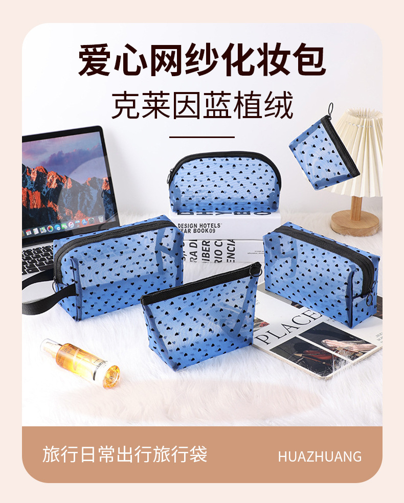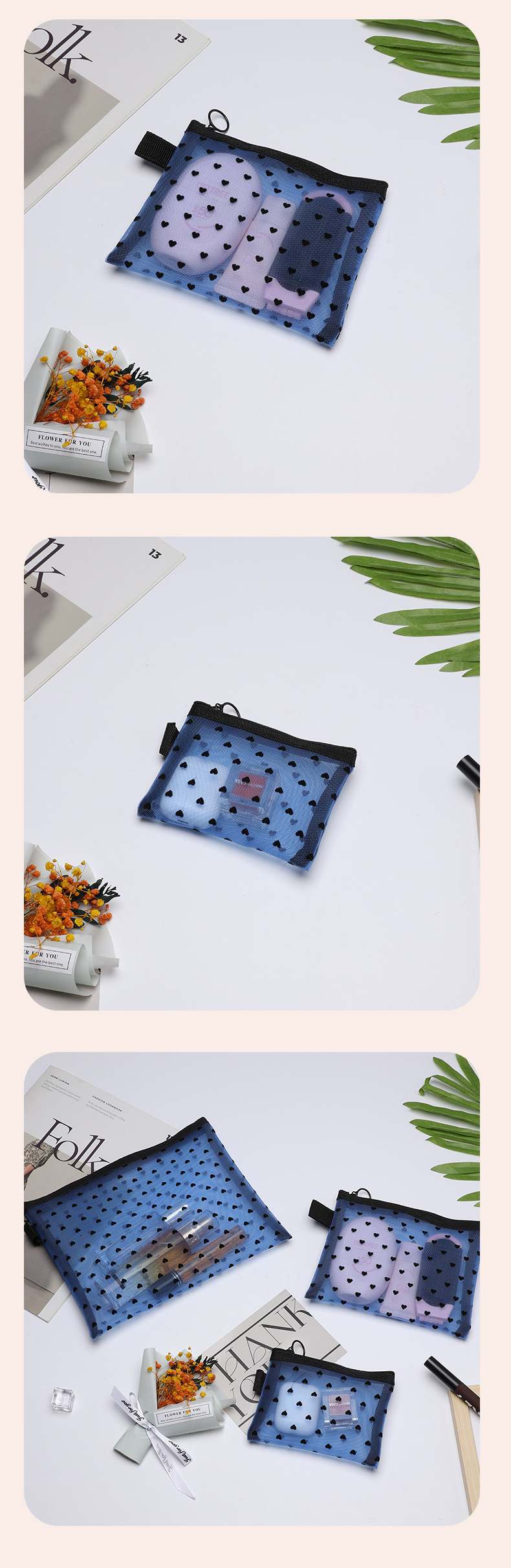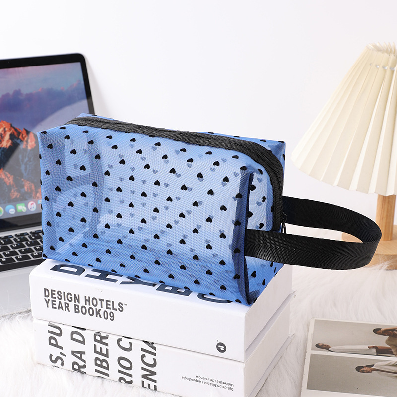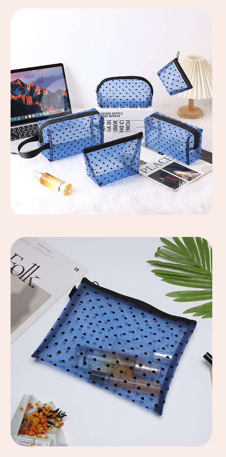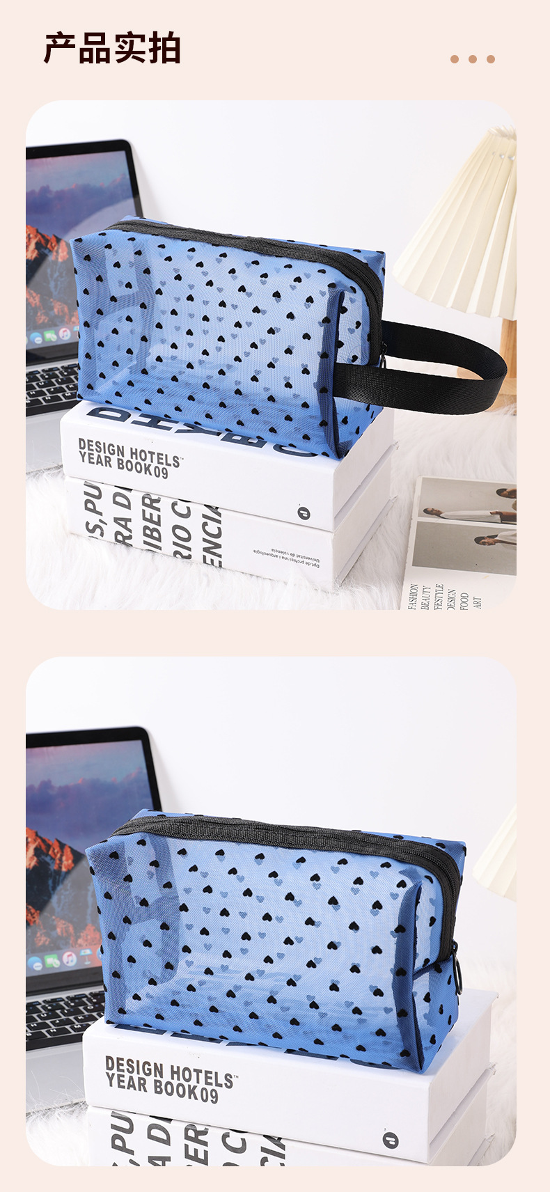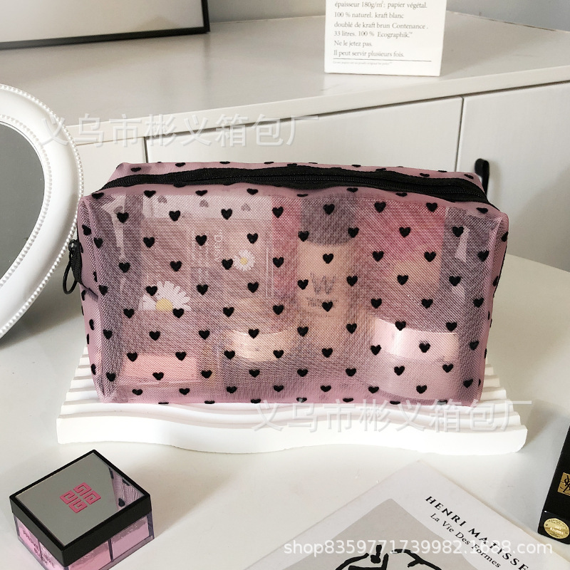 소량 생산 인스타그램 스타일 망사 벨벳 하트 모양 세면도구 보관 휴대용 여행용 화장품 가방 대용량 통기성 귀여움스토어 가기