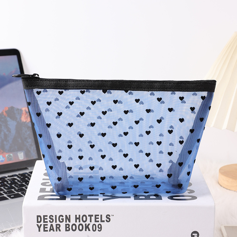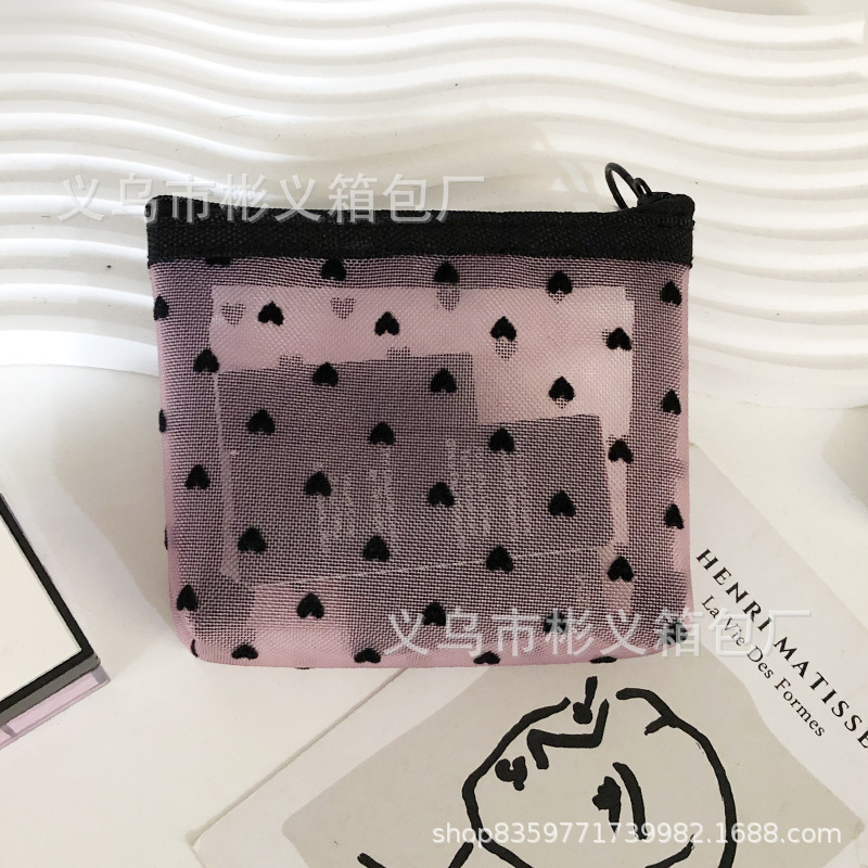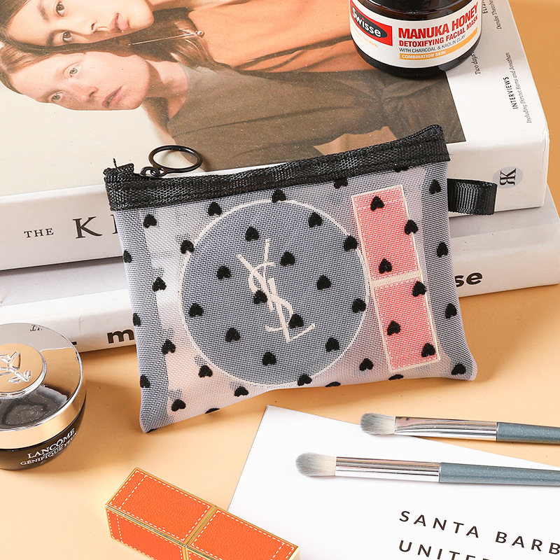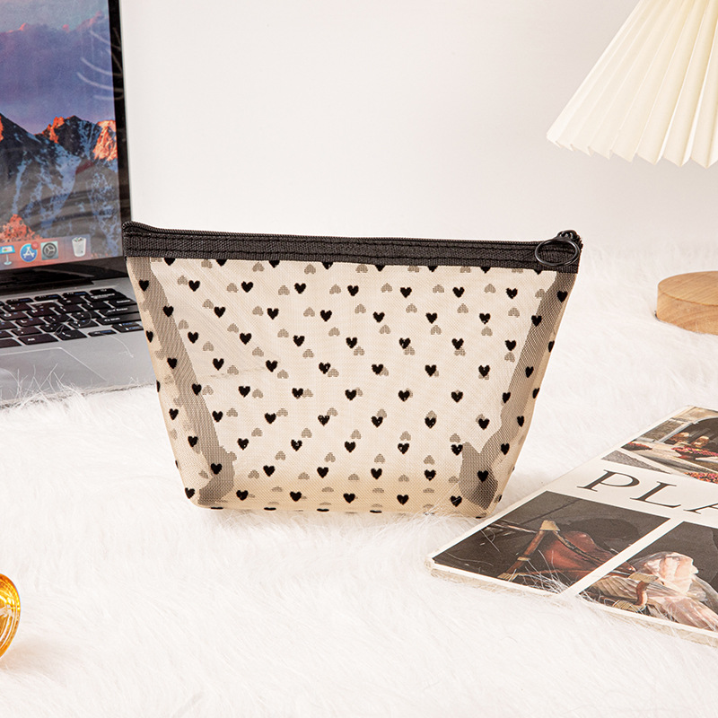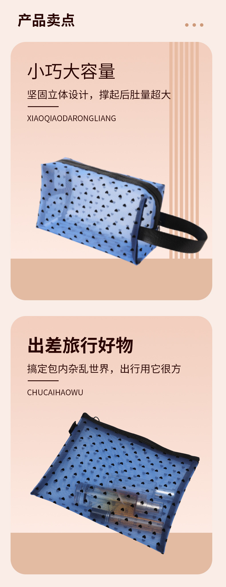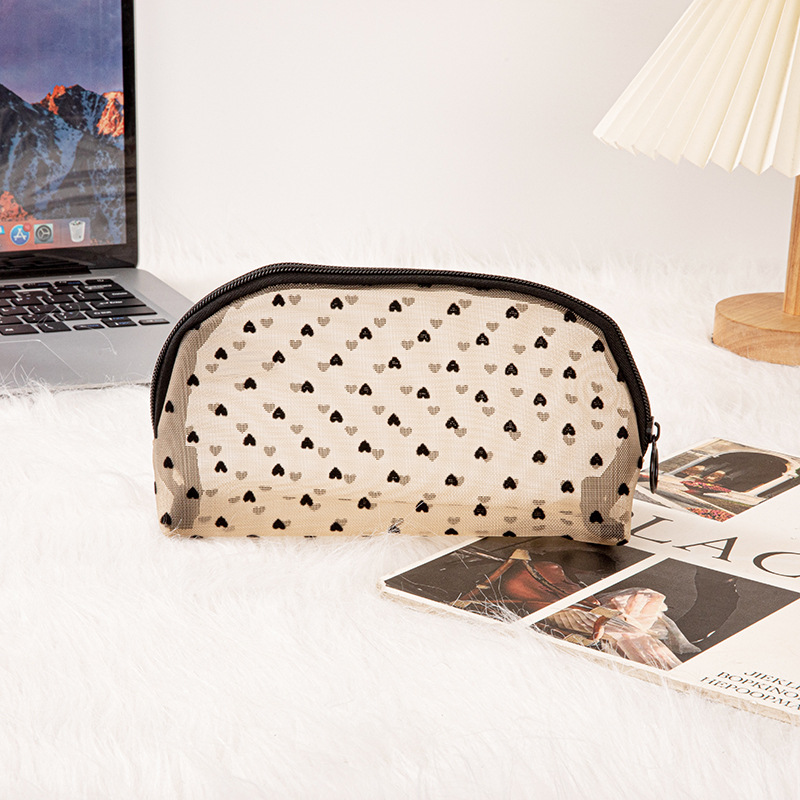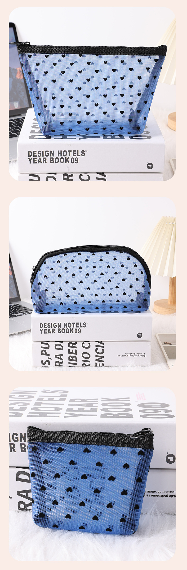 소량 생산 인스타그램 스타일 망사 벨벳 하트 모양 세면도구 보관 휴대용 여행용 화장품 가방 대용량 통기성 귀여움스토어 가기