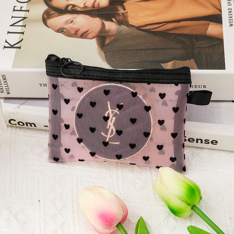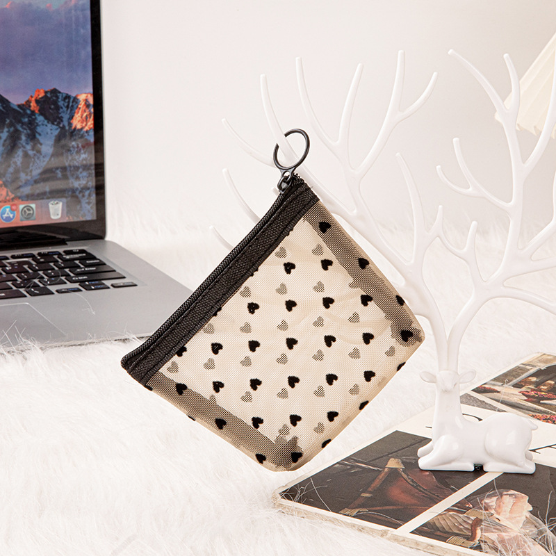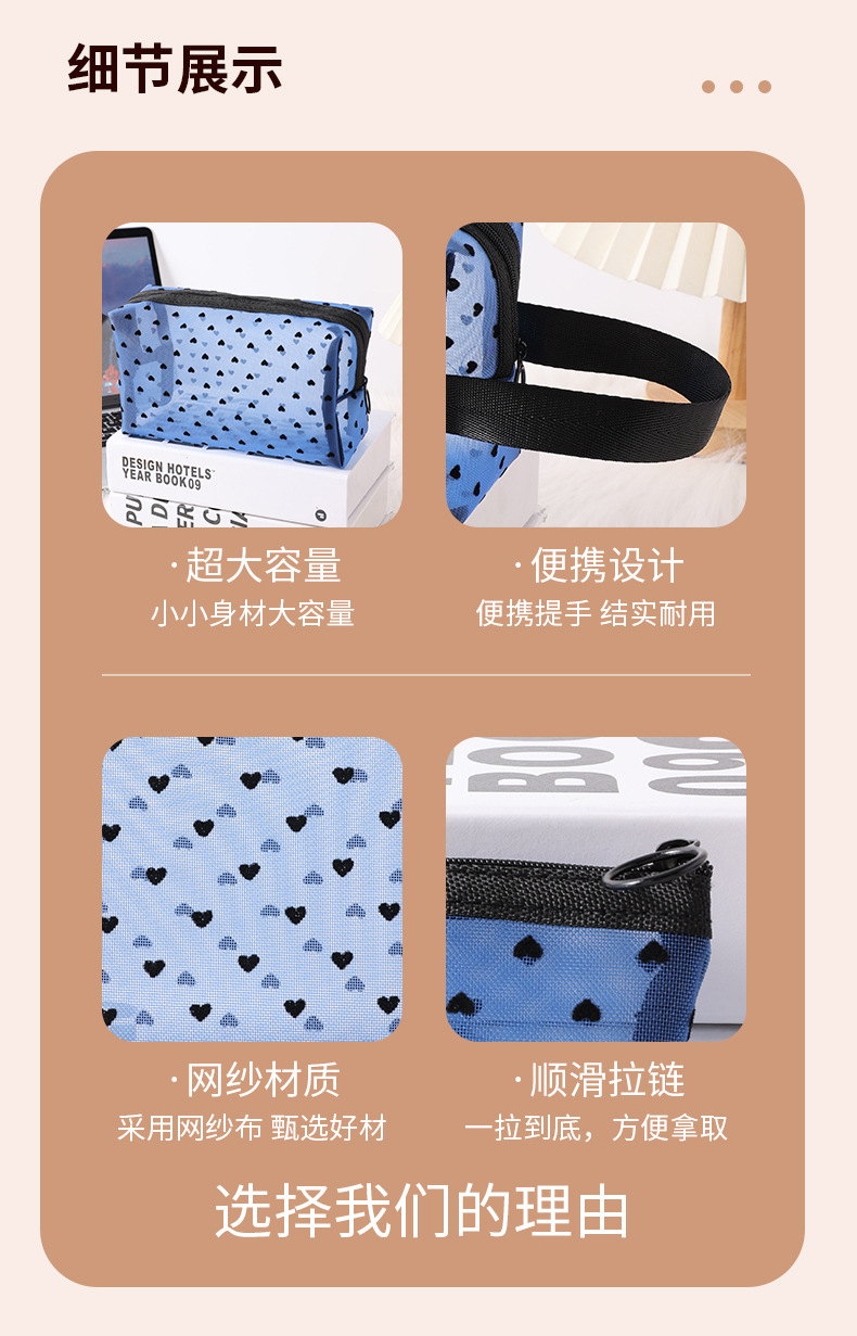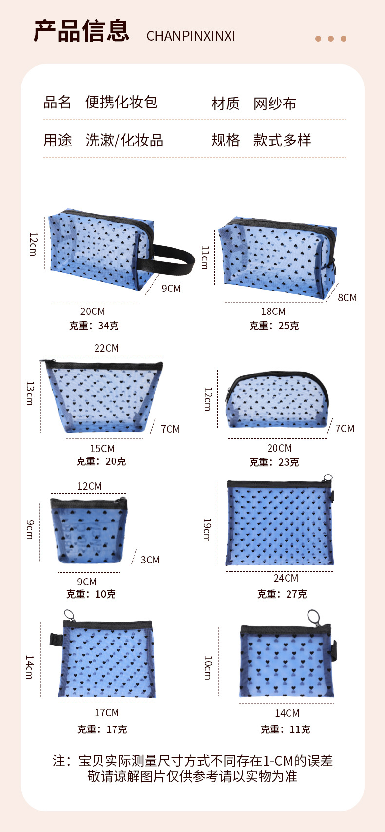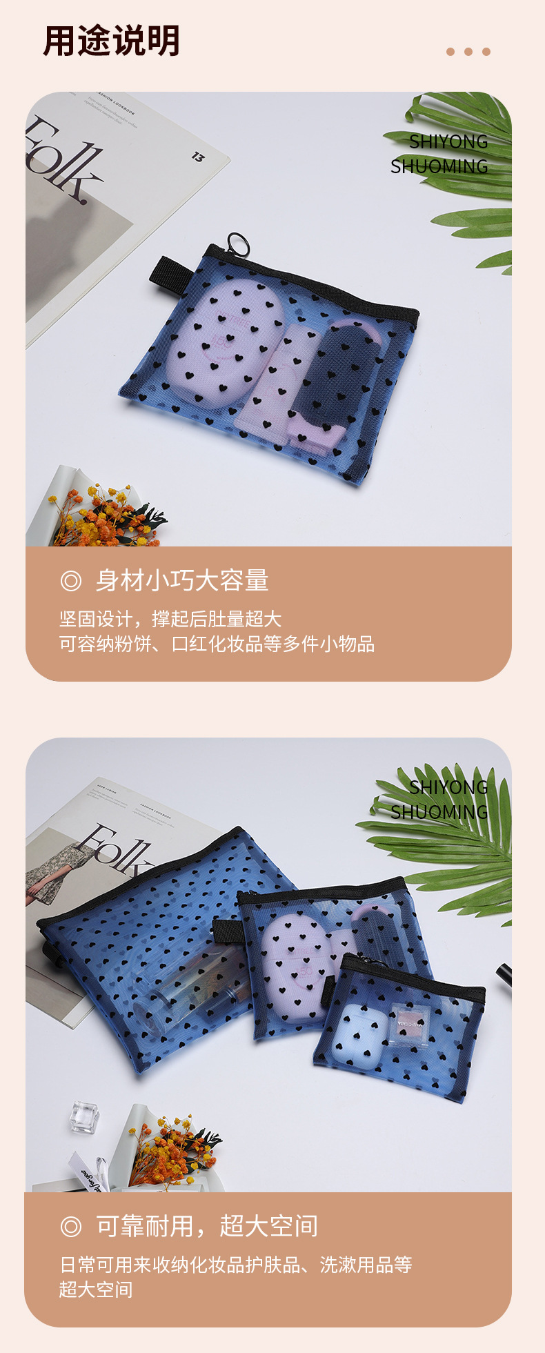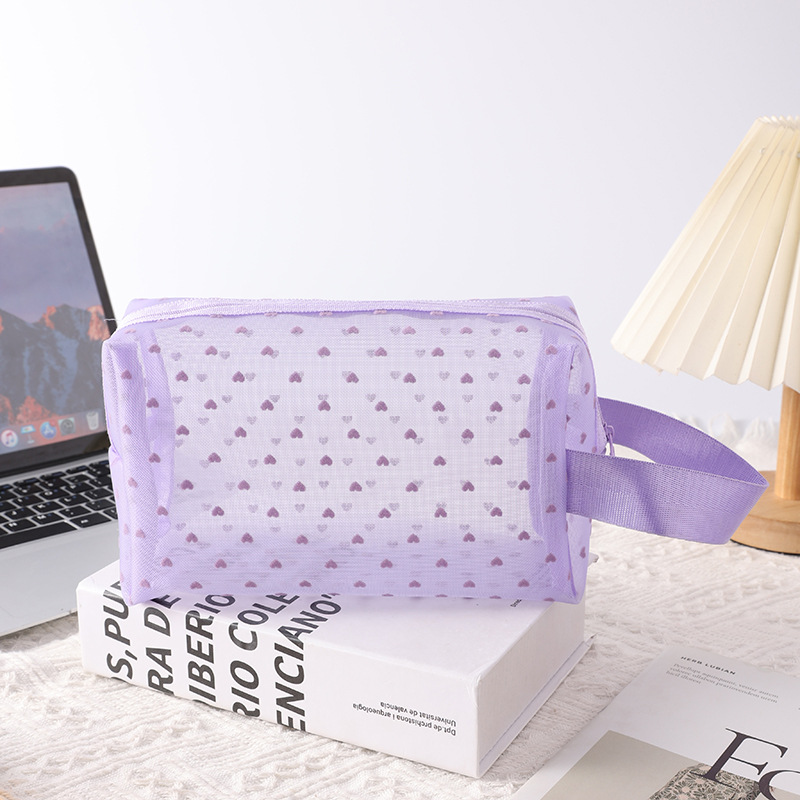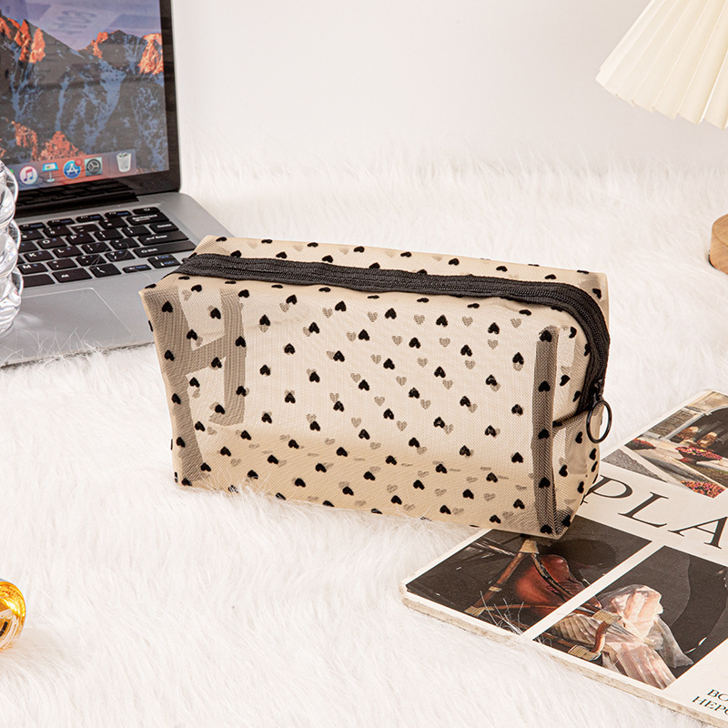 소량 생산 인스타그램 스타일 망사 벨벳 하트 모양 세면도구 보관 휴대용 여행용 화장품 가방 대용량 통기성 귀여움스토어 가기