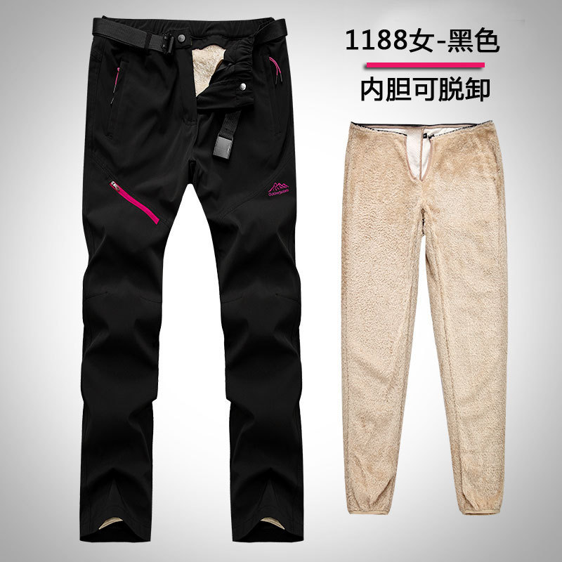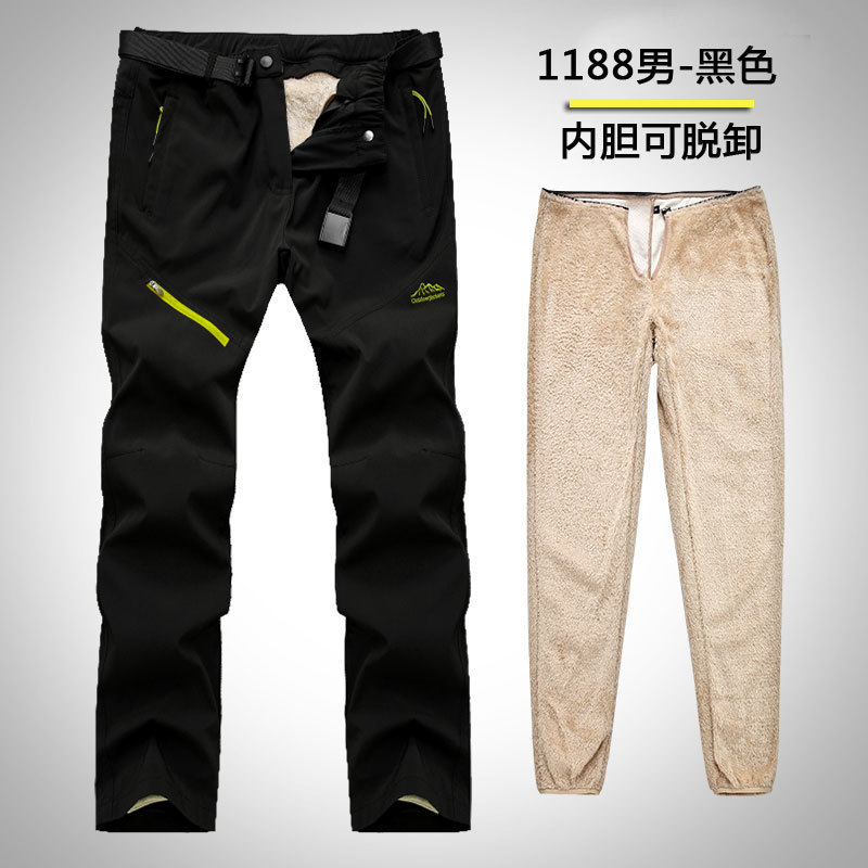 가을 겨울 남성용 및 여성용 아웃도어 바지, 벨벳 및 두꺼운 탈착식 라이너, 따뜻하고 방풍 및 방수, 와이드 하이킹 바지