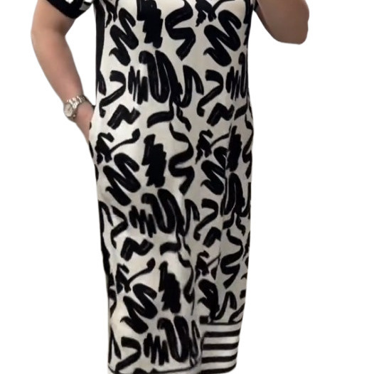 2025 년 여름 아마존 유럽과 미국의 국경 간 V-목 스티칭 짧은 소매 높은 허리 인쇄 원피스 여성 원피스