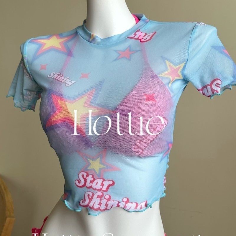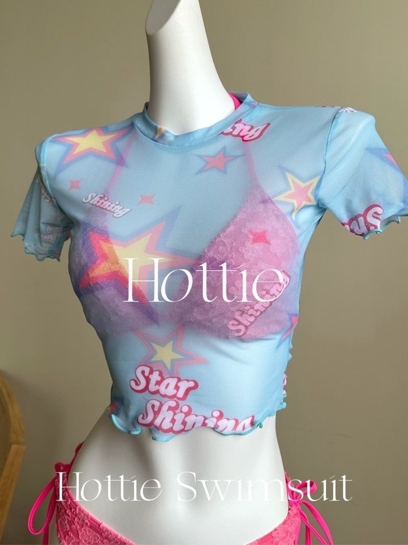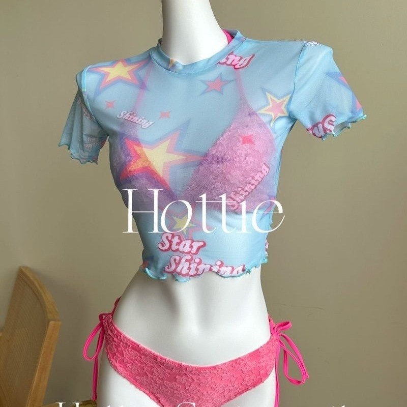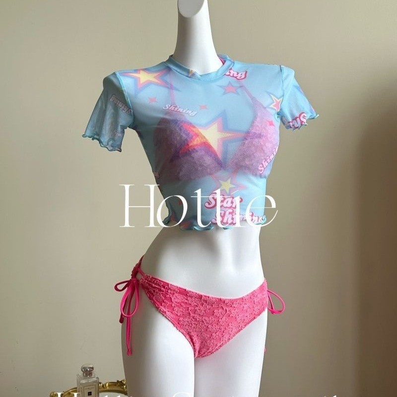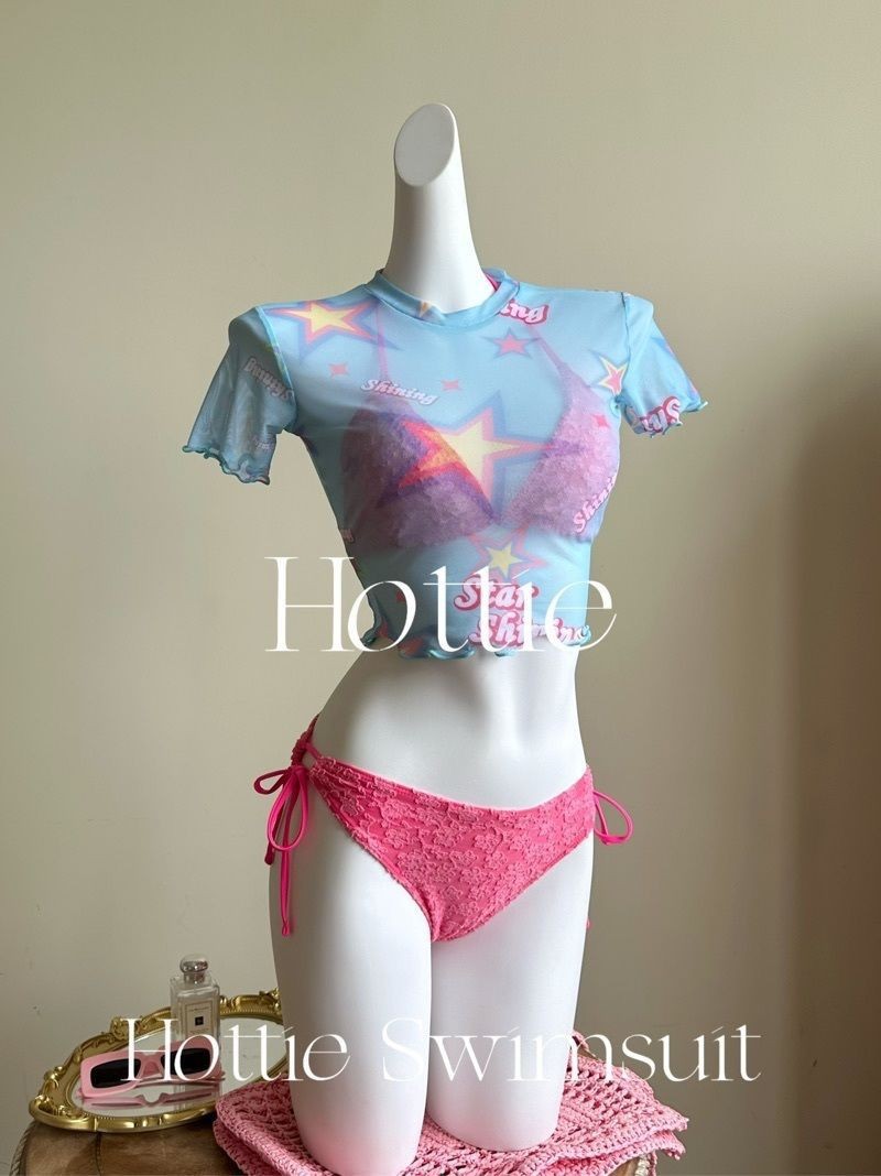 2025 새로운 달콤한 소녀 반팔 블라우스 3 피스 비키니 비키니 스플릿 수영복 여성 수영복스토어 가기
