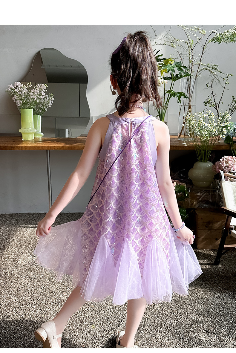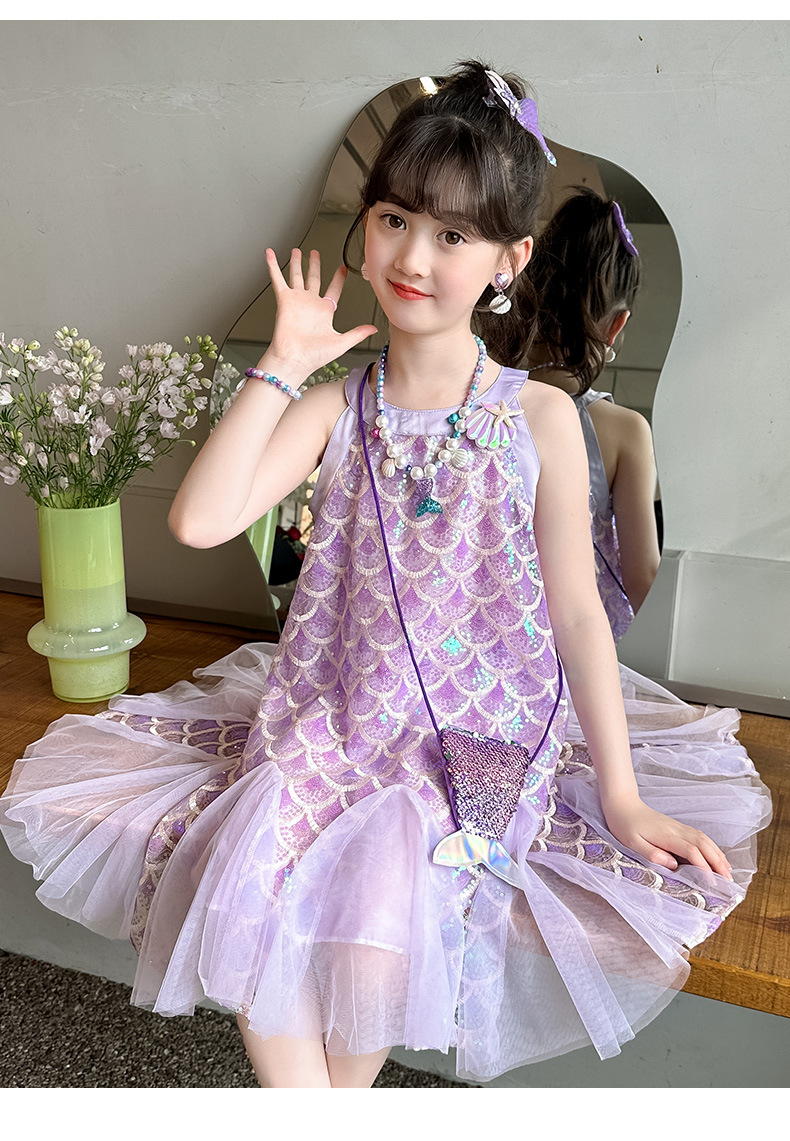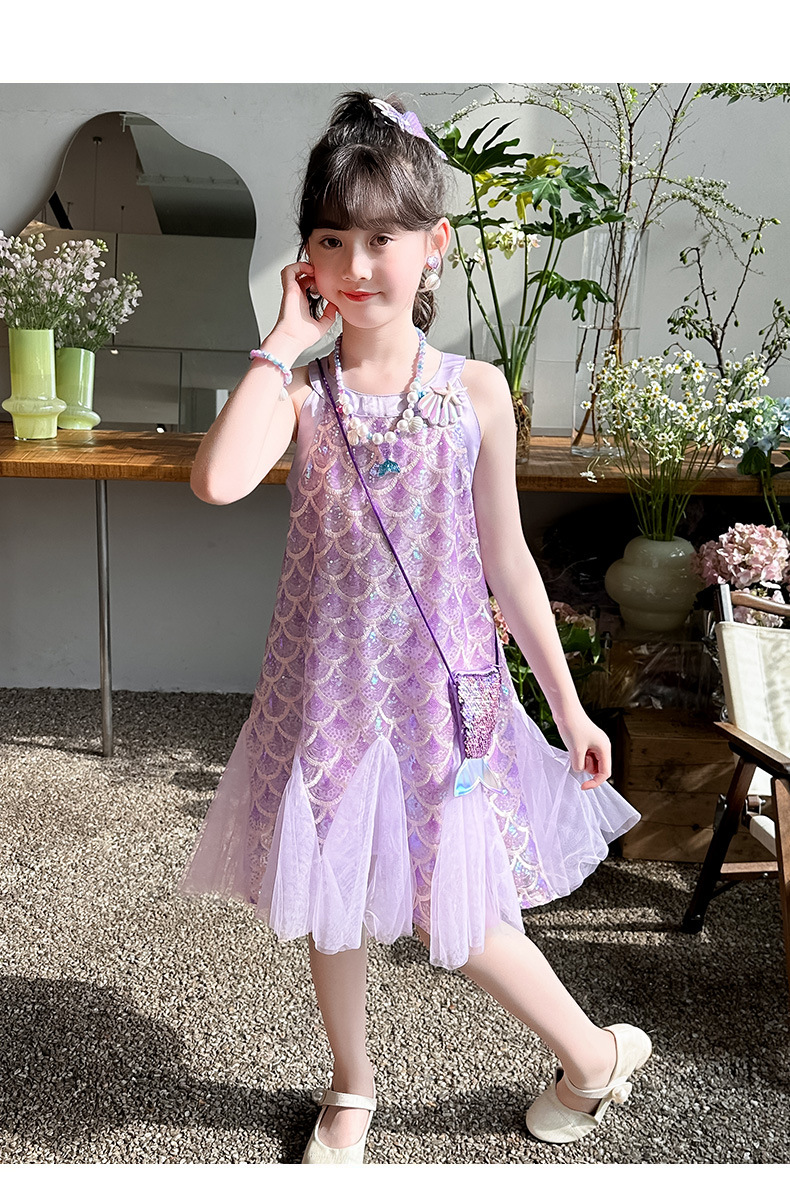 인어 공주 드레스 소녀 여름 드레스 2025 새로운 스타일 소녀 드레스 어린이 여름 조끼 스커트