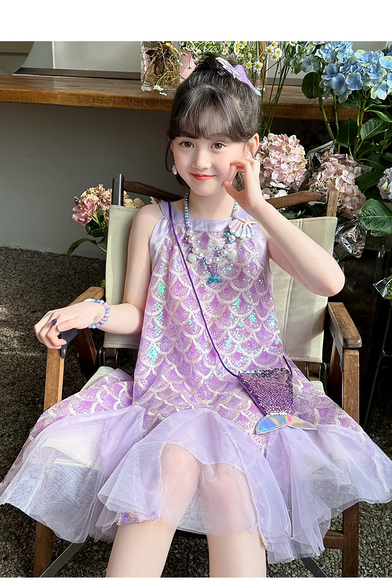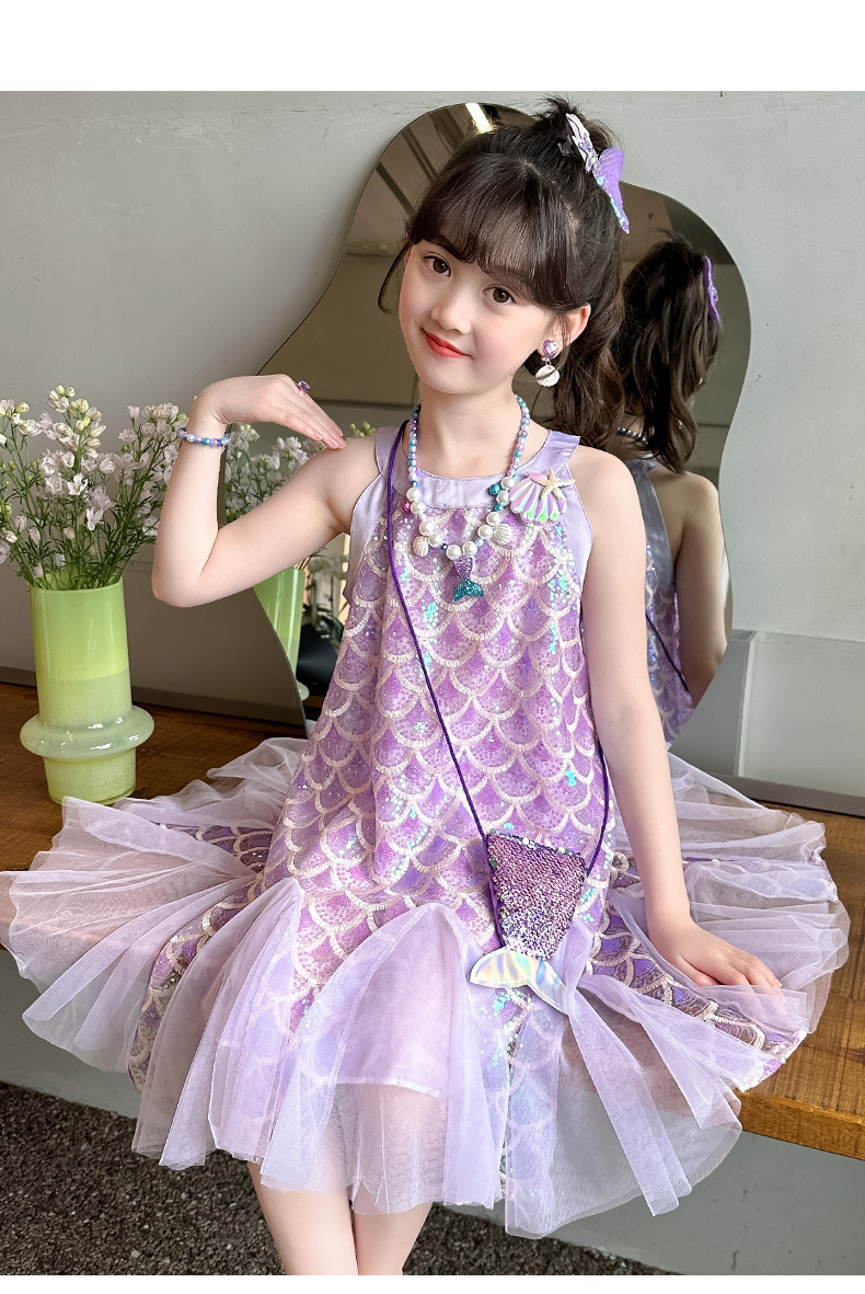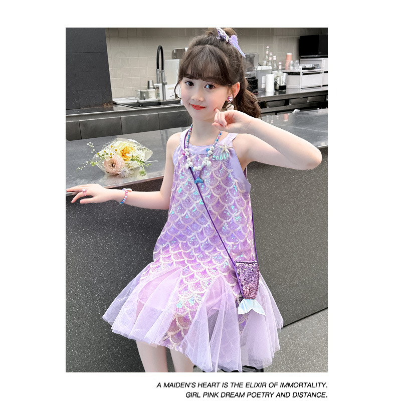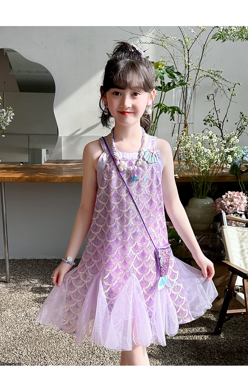인어 공주 드레스 소녀 여름 드레스 2025 새로운 스타일 소녀 드레스 어린이 여름 조끼 스커트스토어 가기