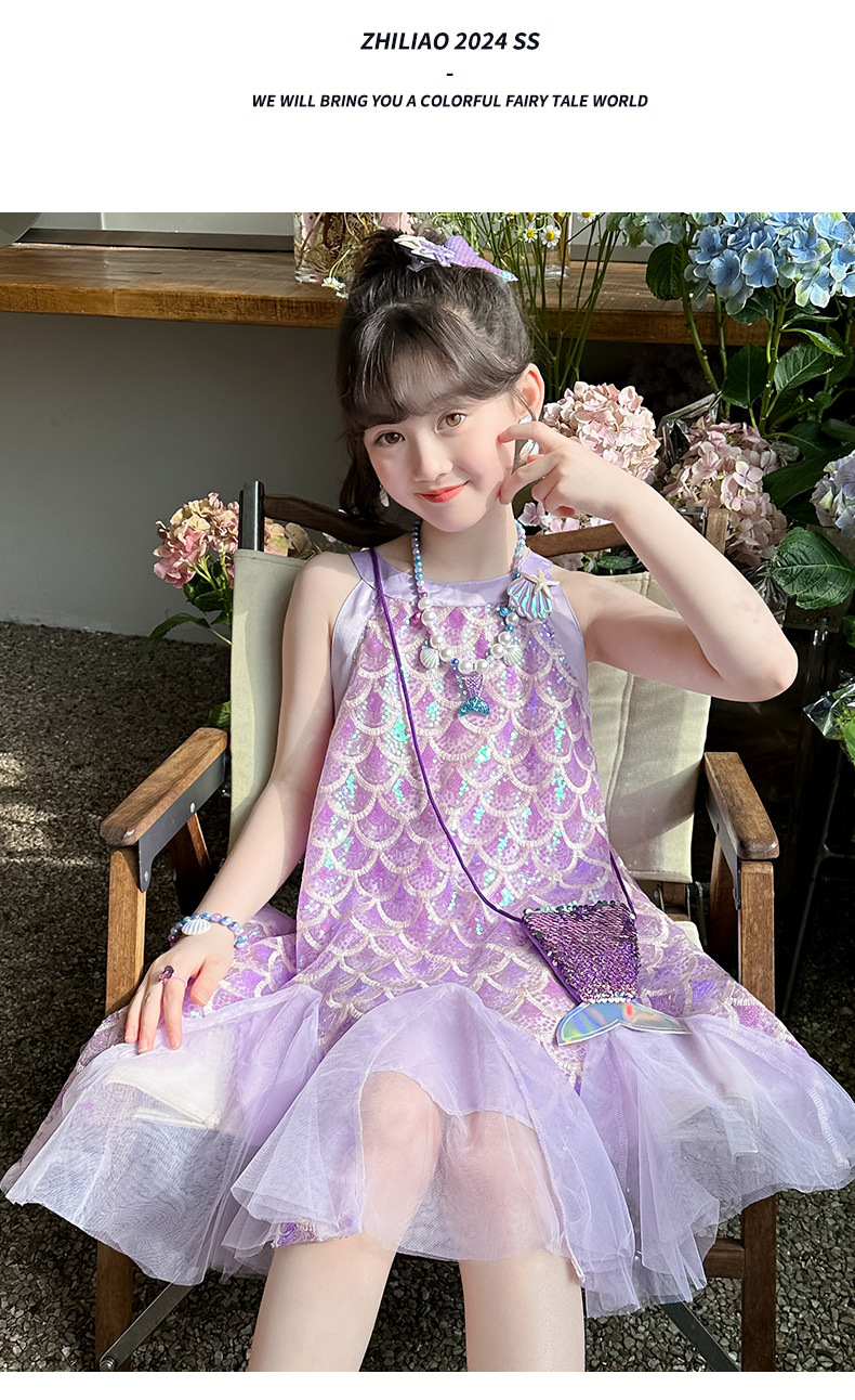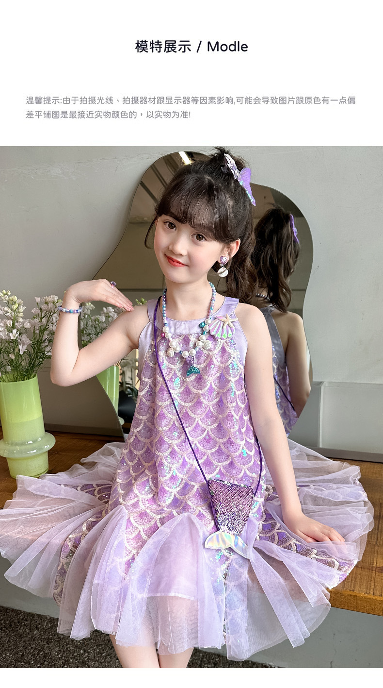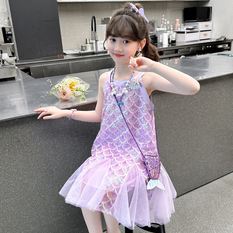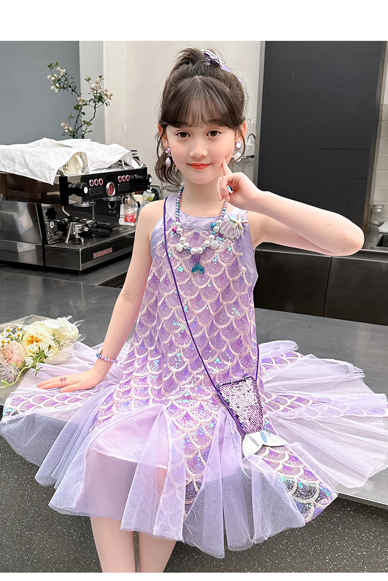 인어 공주 드레스 소녀 여름 드레스 2025 새로운 스타일 소녀 드레스 어린이 여름 조끼 스커트스토어 가기