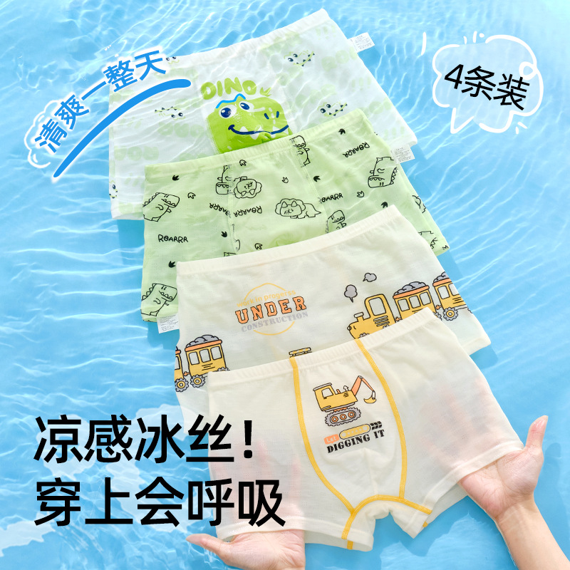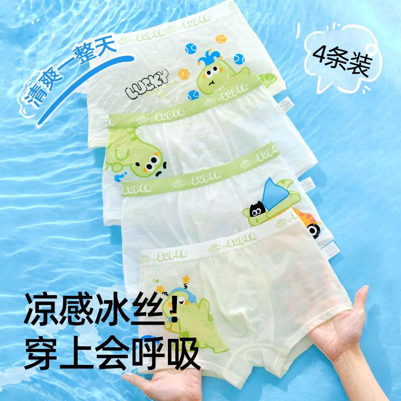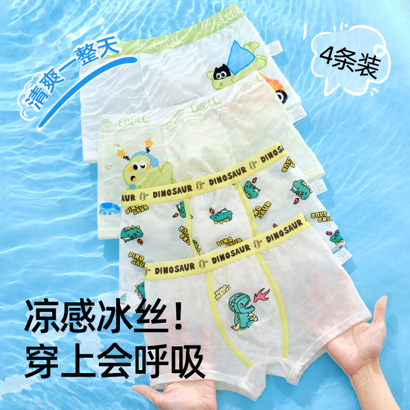 여름 어린이 속옷 소년 얼음 실크 항균 복서 팬티 중형 및 대형 어린이 복서 반바지 10A 얇은 통기성 및 땀 흡수성스토어 가기