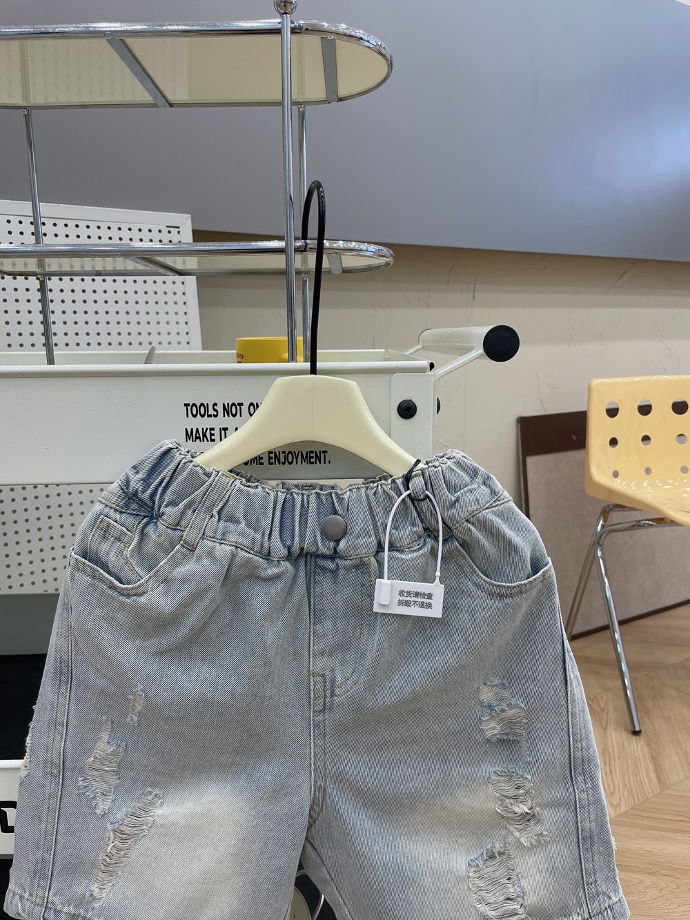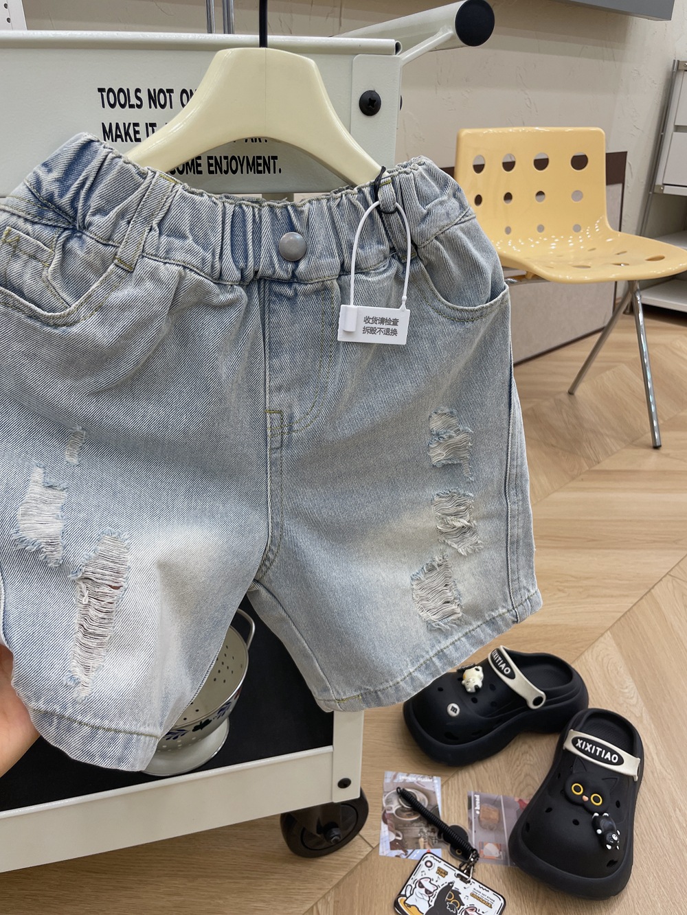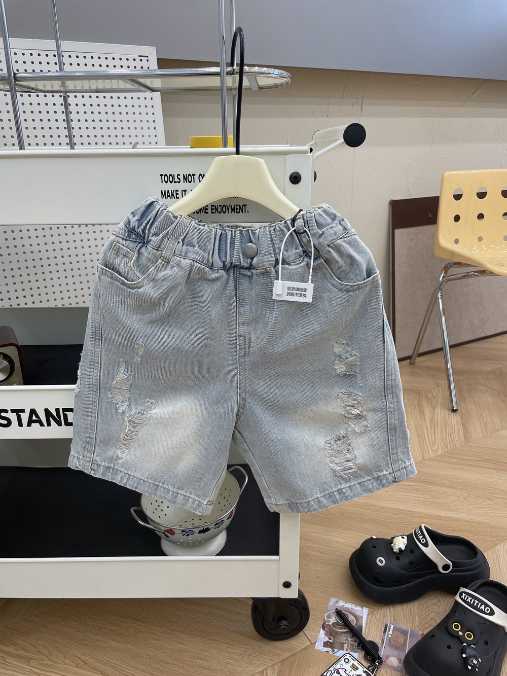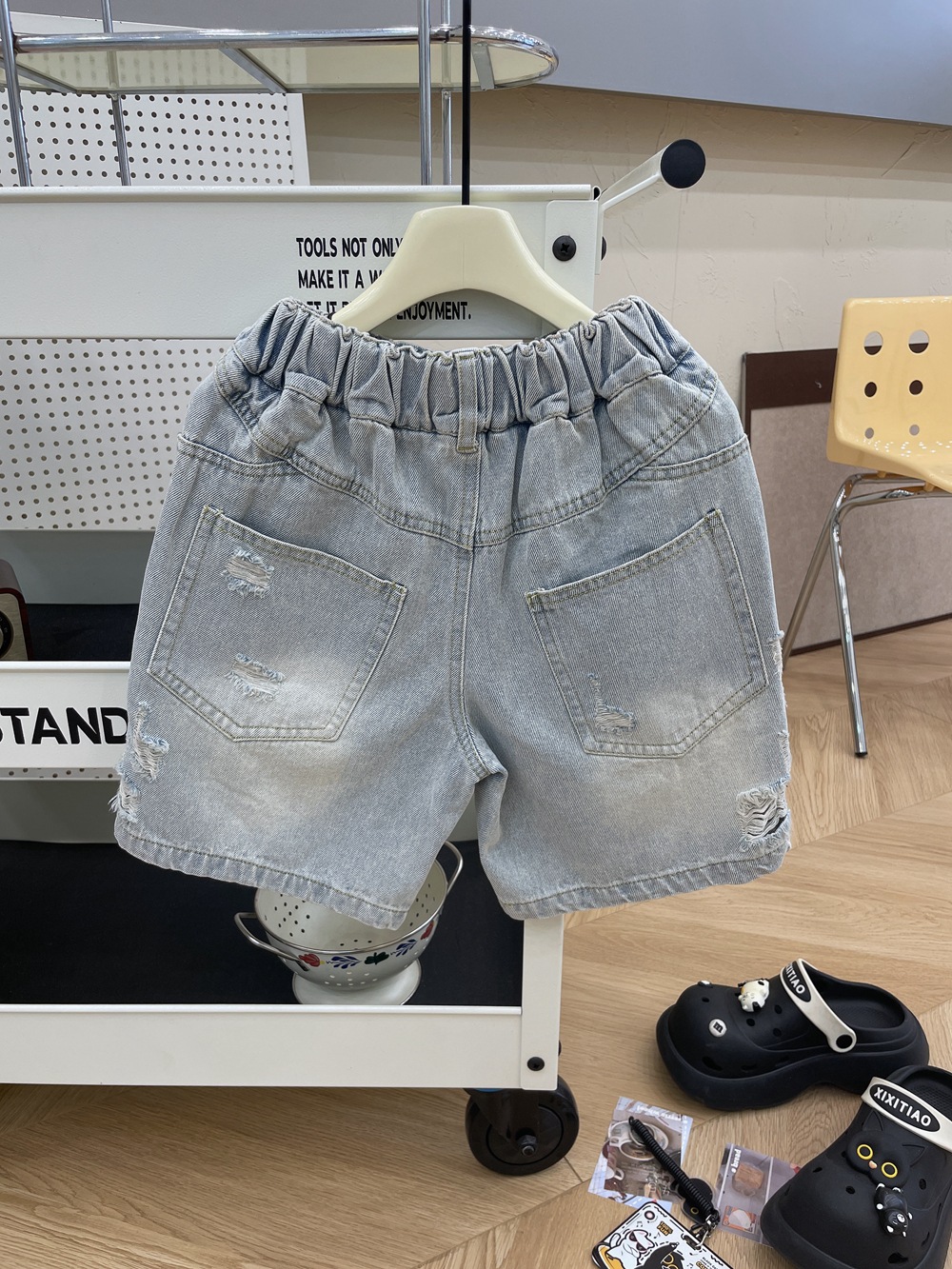 대각선 스플라이싱 작은 구멍 데님 미드팬츠 퓨어 코튼 2025 여름 신작 아동 스타일 데님 반바지 5부 팬츠 트렌디스토어 가기