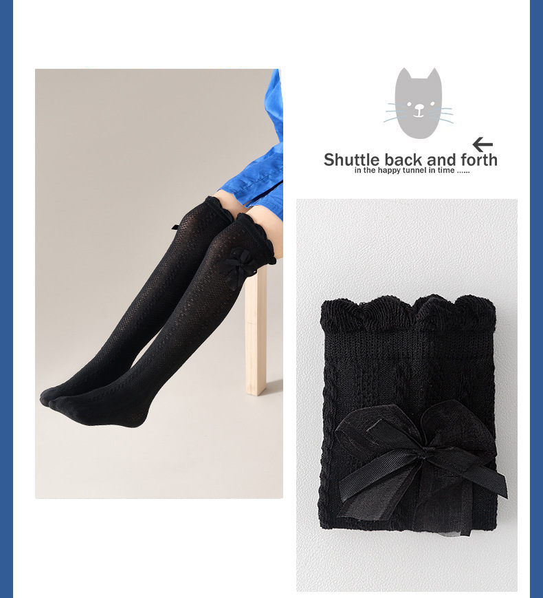 [신제품] 아동용 양말 무릎 높이 양말 소녀 스타킹 여름 얇은 베이비 로리타 보우