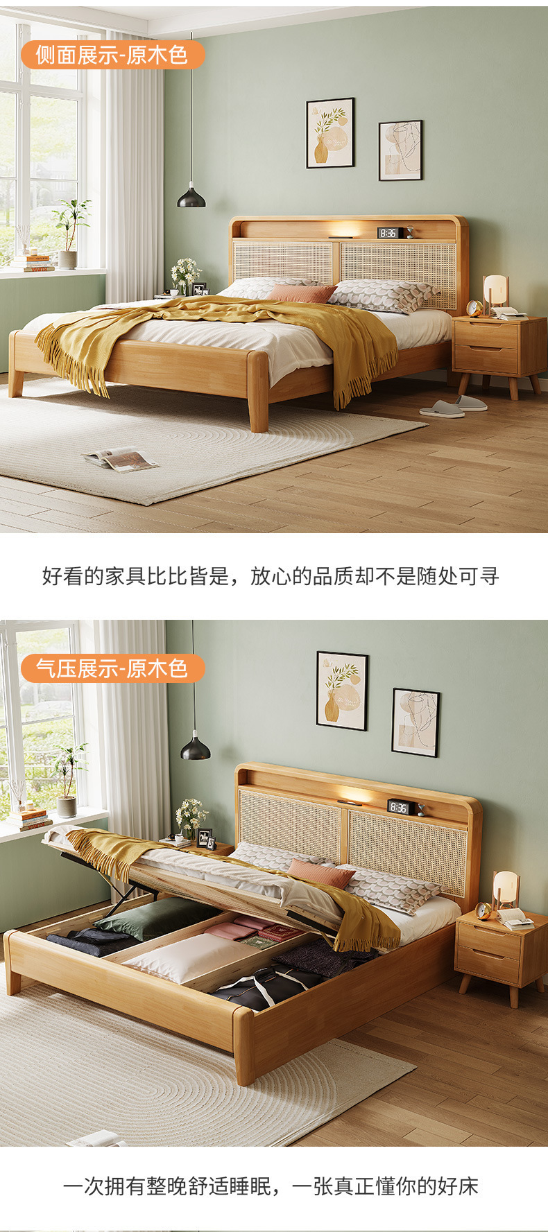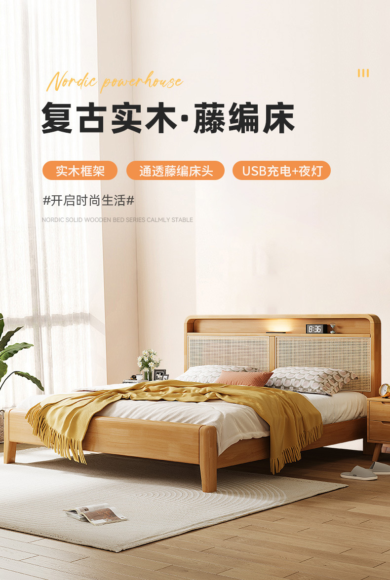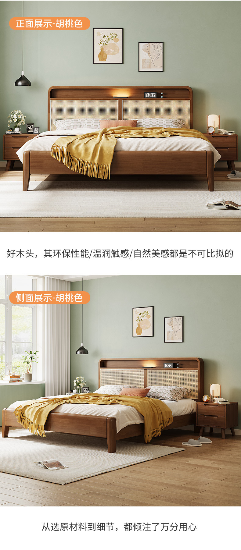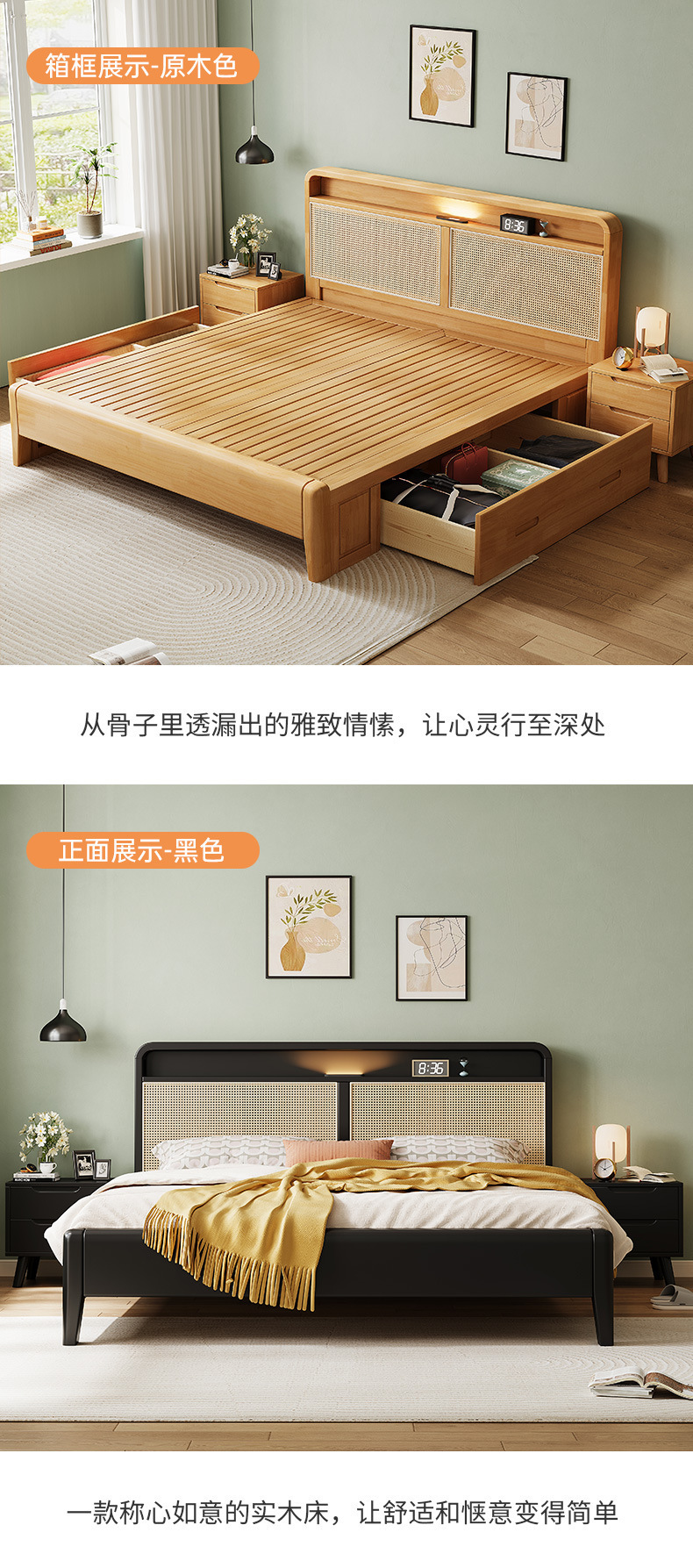 프렌치 블랙 와비사비 스타일 1.5m 레트로 원목 등나무 침대 마스터 침실 1.8m 더블 침대 중세 스타일 수납 침대스토어 가기