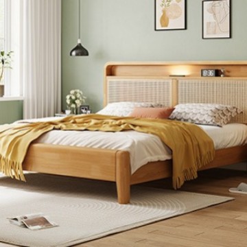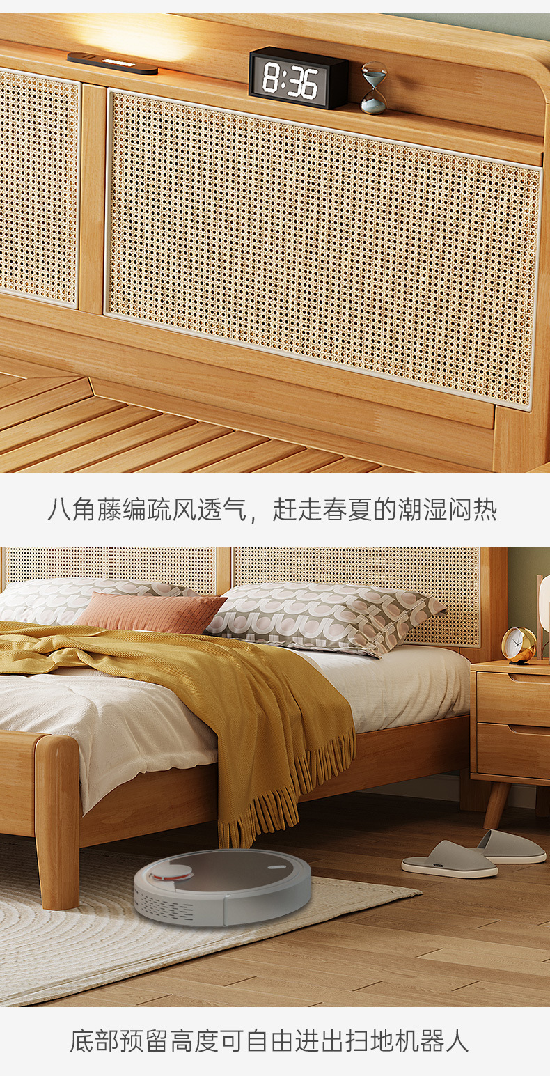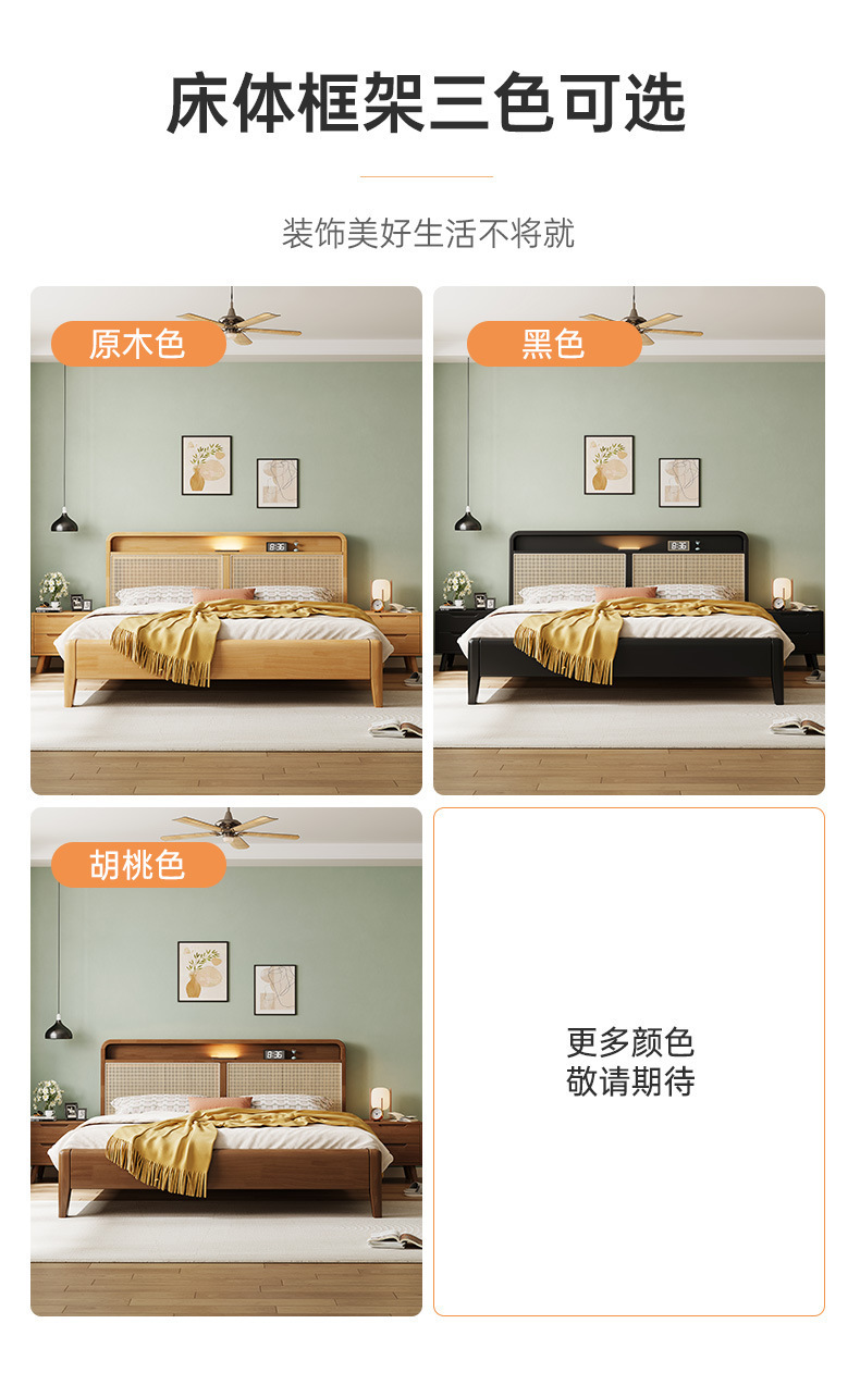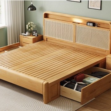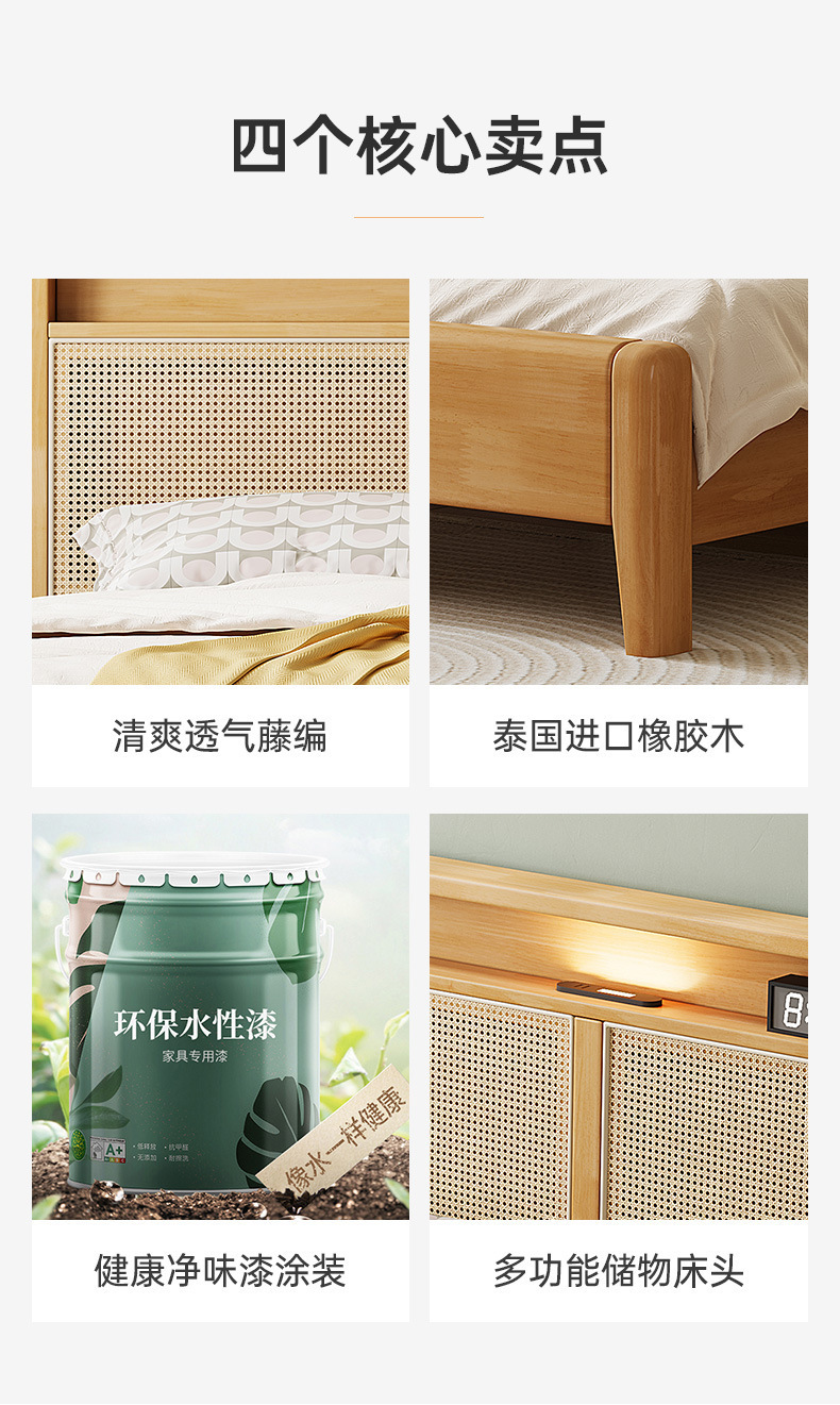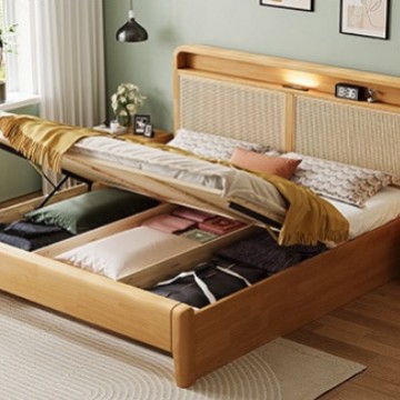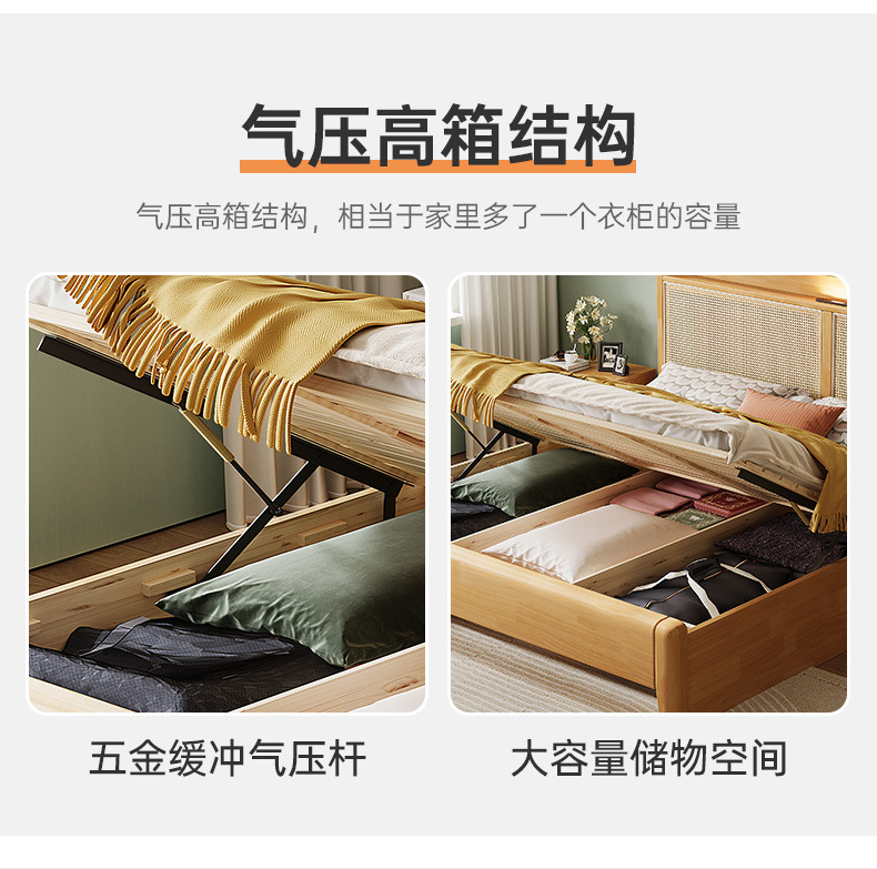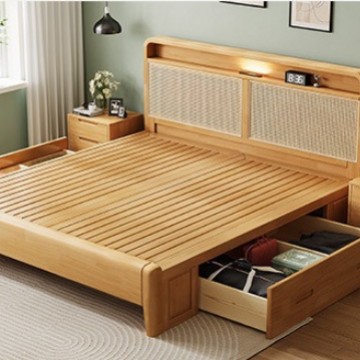 프렌치 블랙 와비사비 스타일 1.5m 레트로 원목 등나무 침대 마스터 침실 1.8m 더블 침대 중세 스타일 수납 침대스토어 가기