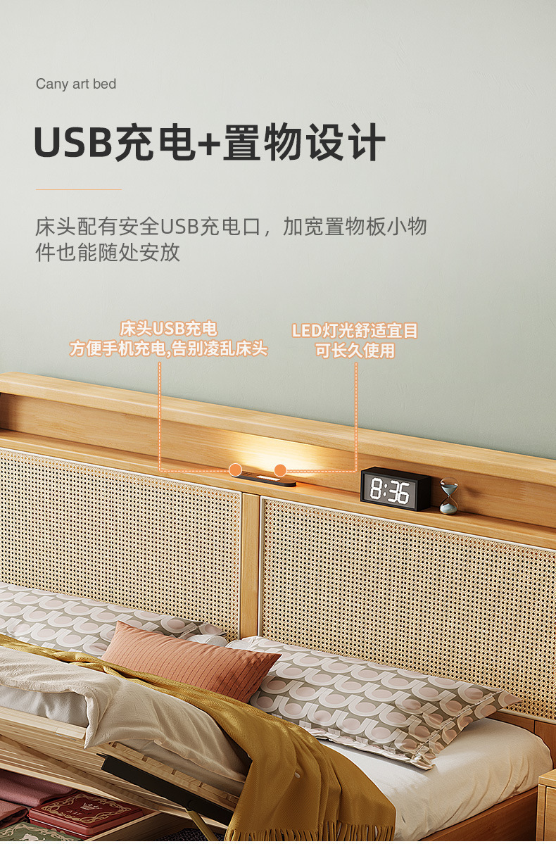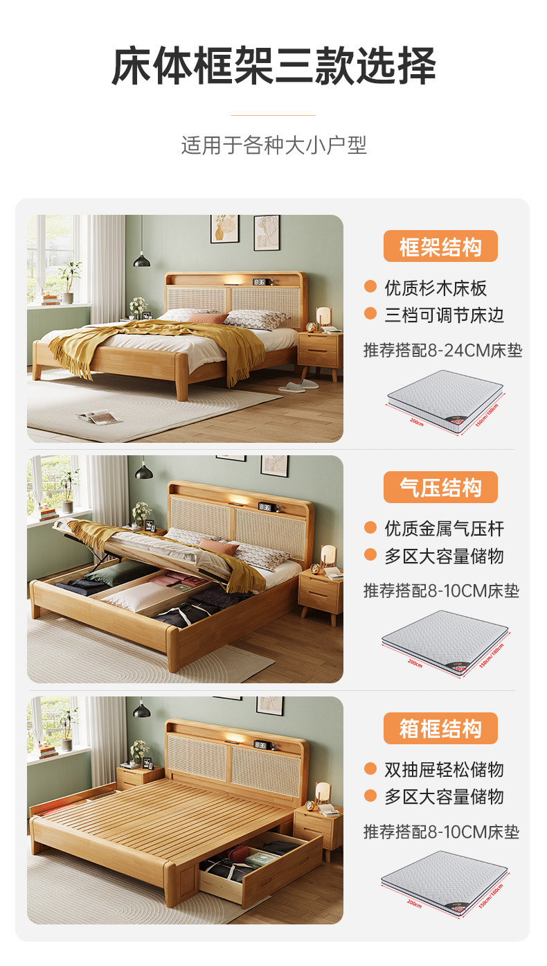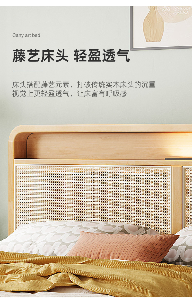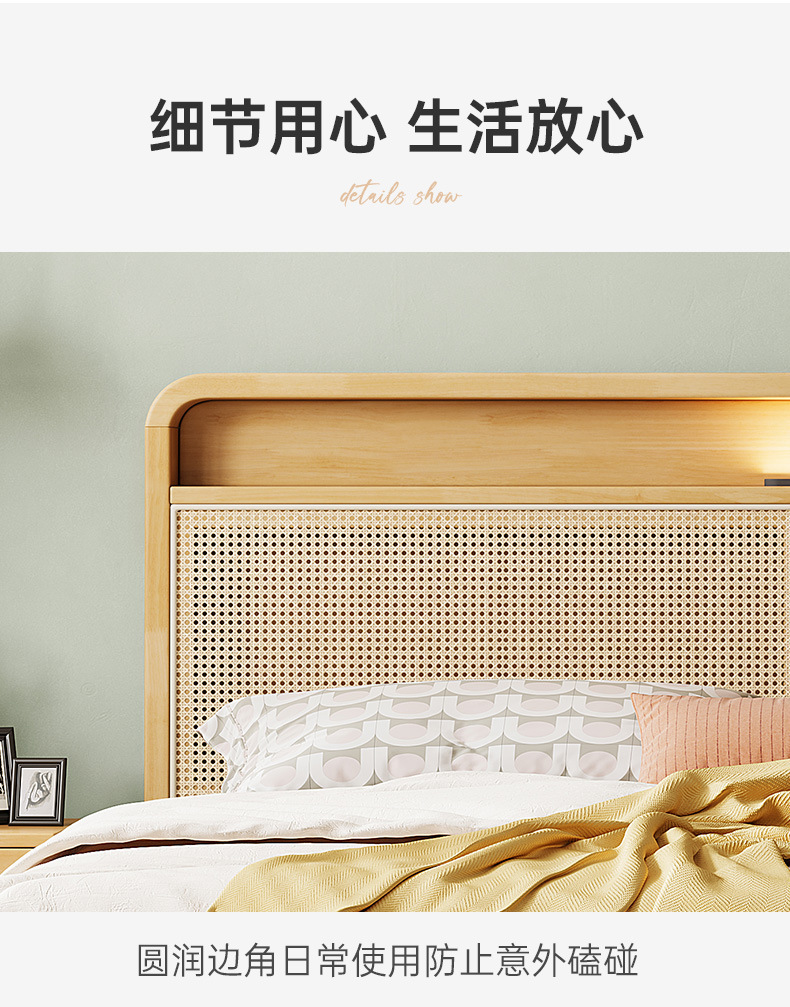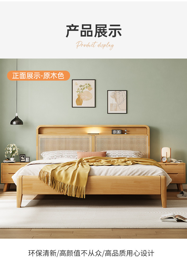 프렌치 블랙 와비사비 스타일 1.5m 레트로 원목 등나무 침대 마스터 침실 1.8m 더블 침대 중세 스타일 수납 침대스토어 가기