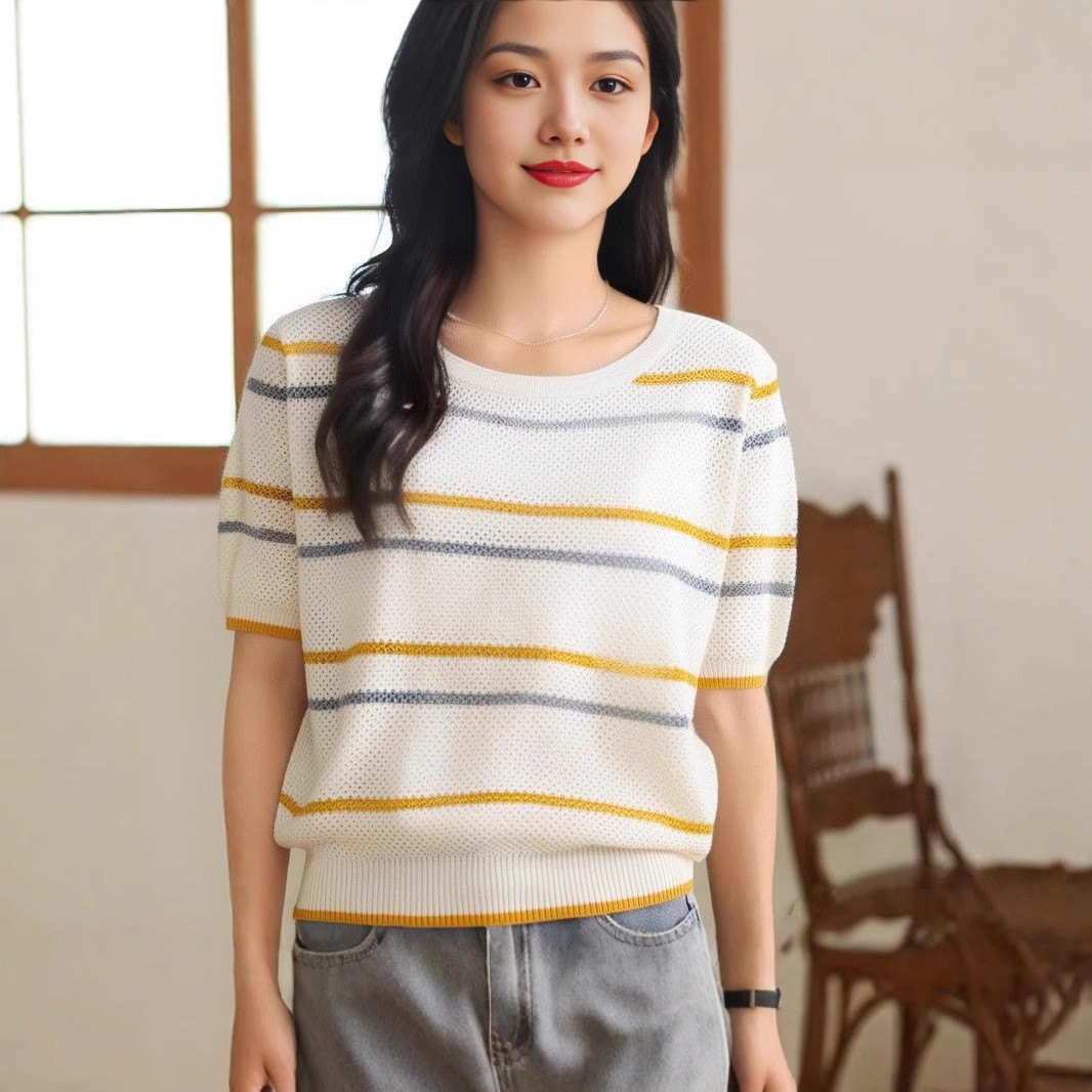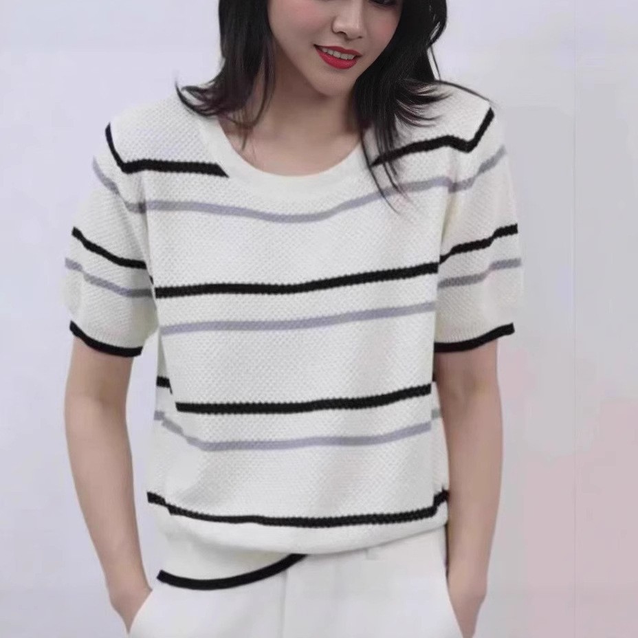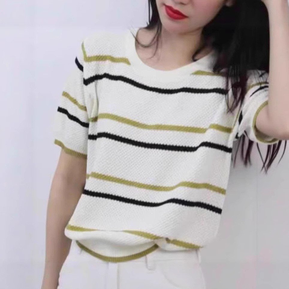 여성을위한 세련된 줄무늬 스웨터 여름 새로운 다목적 느슨한 프랑스 스타일 여성 의류 봄 가을 겨울 새로운 아름다운상의스토어 가기