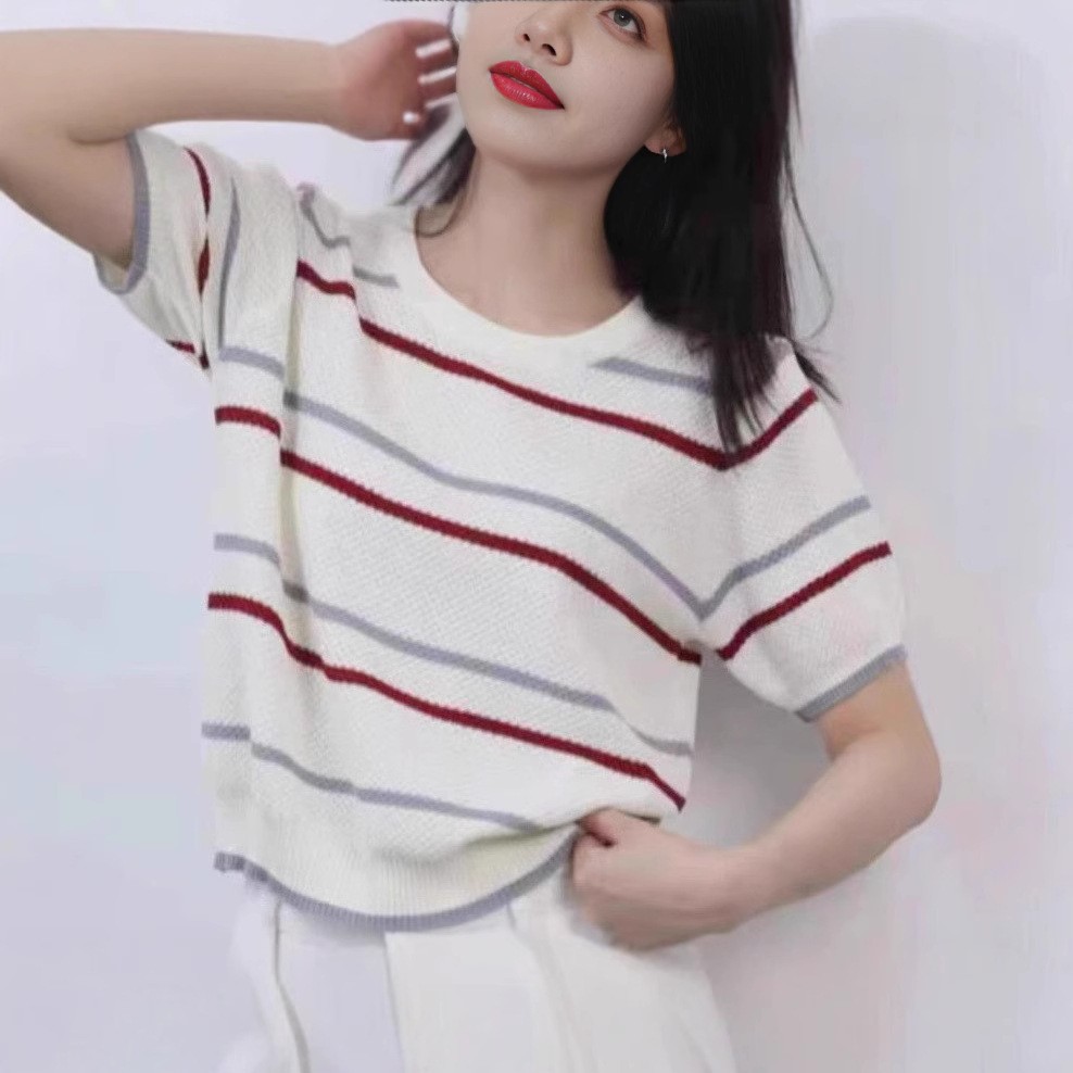 여성을위한 세련된 줄무늬 스웨터 여름 새로운 다목적 느슨한 프랑스 스타일 여성 의류 봄 가을 겨울 새로운 아름다운상의