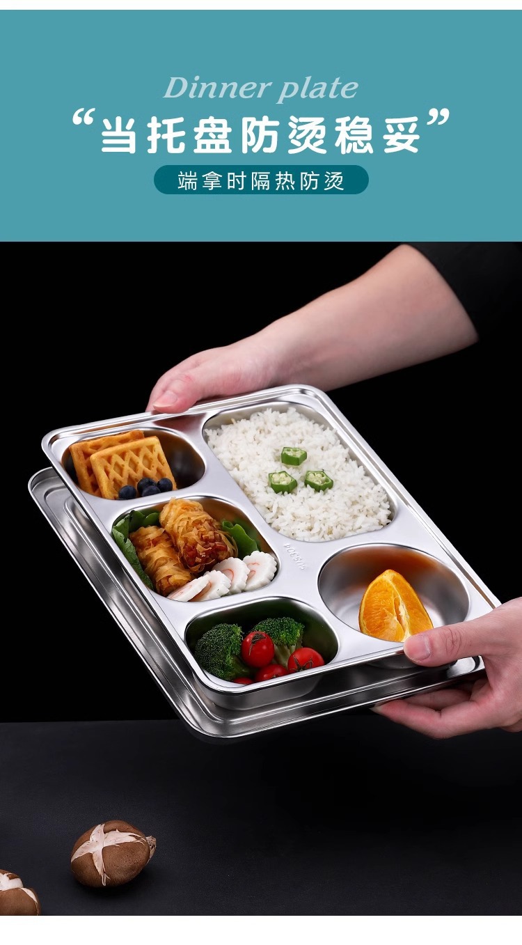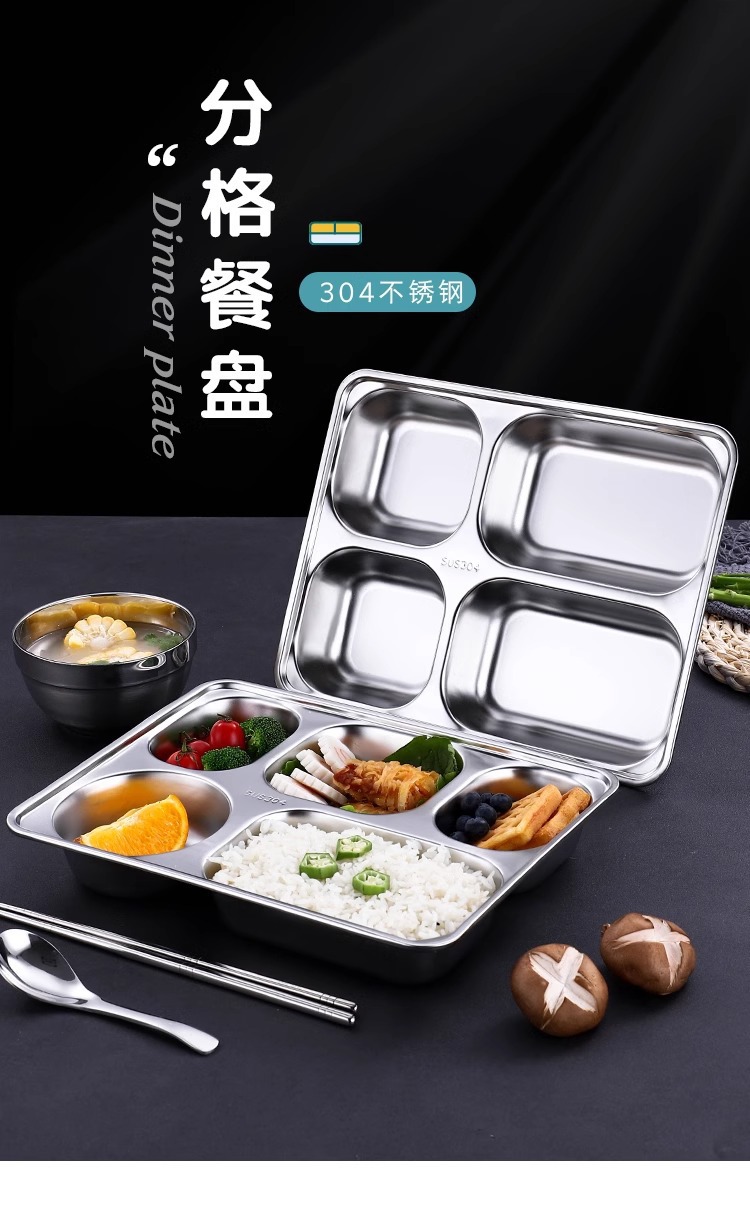 (인도네시아 디너 플레이트) 국경 간 스테인레스 스틸 패스트 푸드 플레이트 학생식당 식사 플레이트 밥 플레이트 야채 플레이트 성인용 칸막이 플레이트스토어 가기