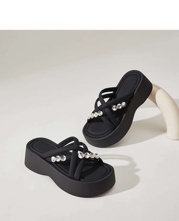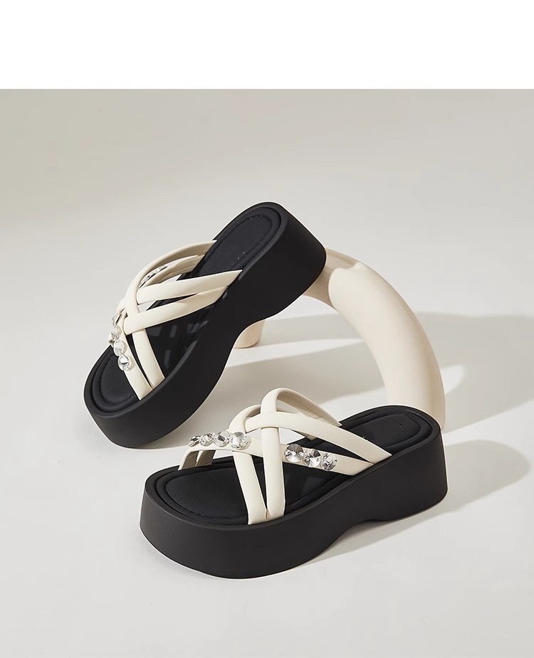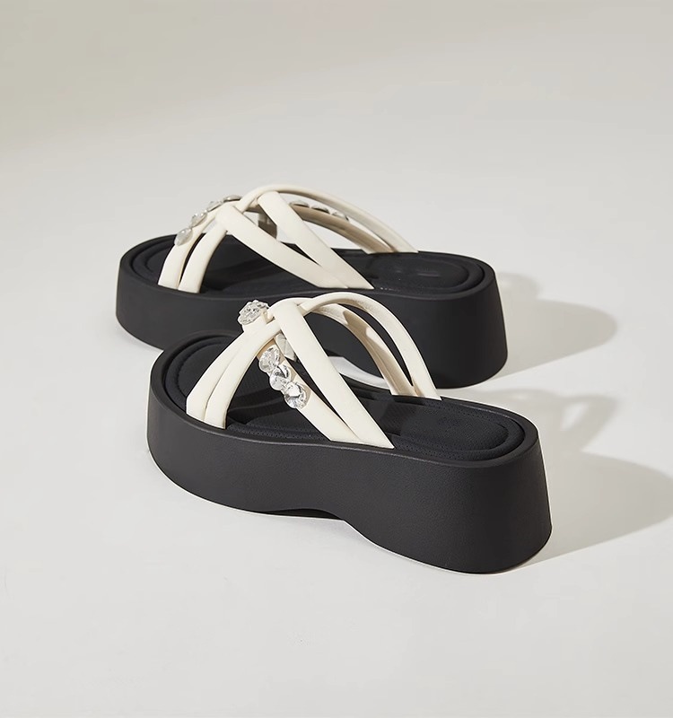 여성을위한 두꺼운 밑창 슬리퍼 2025 새로운 여름 겉옷 스커트와 매치하는 플랫폼 신발 비치 샌들