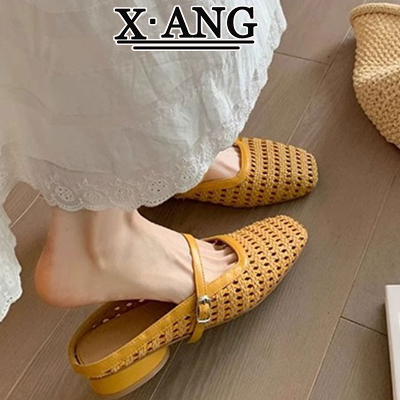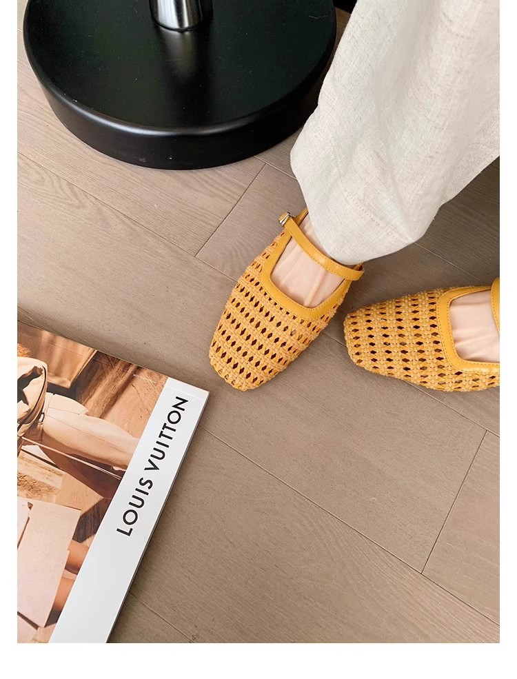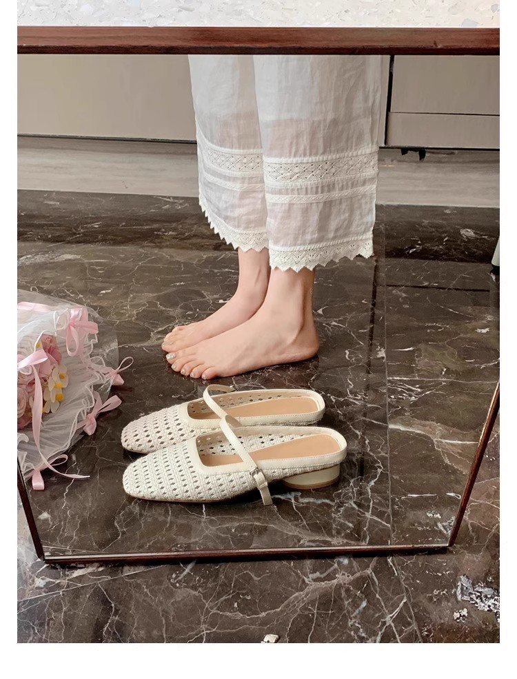 양가죽 손으로 짠 중공 Baotou Mary Jane Slippers 여성용 여름 의상 스커트 두꺼운 힐 샌들 비치 샌들