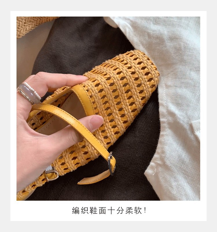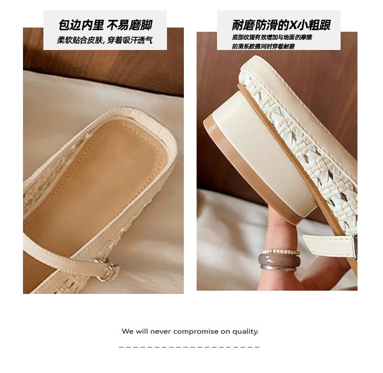 양가죽 손으로 짠 중공 Baotou Mary Jane Slippers 여성용 여름 의상 스커트 두꺼운 힐 샌들 비치 샌들스토어 가기