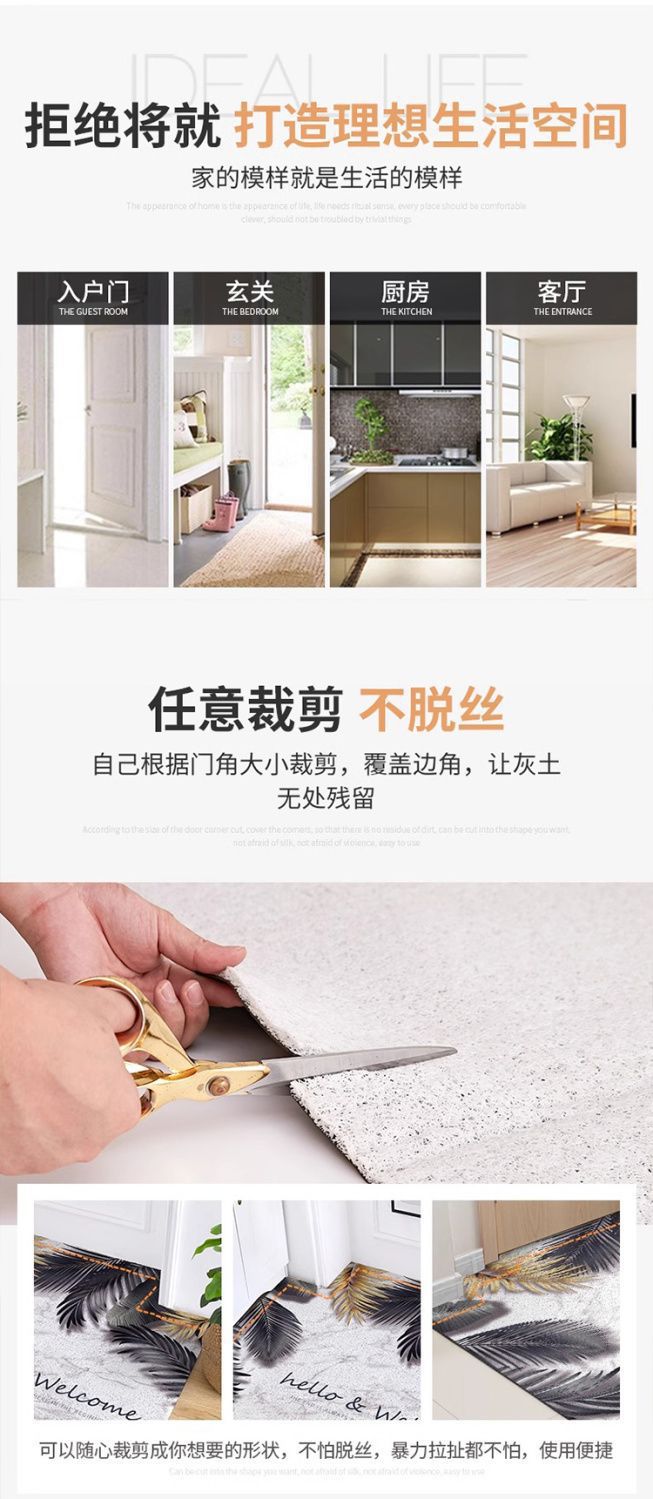 현관문 바닥매트, 모던하고 심플한 크림풍 바닥매트, 진흙과 먼지를 제거하는 실크링 현관매트, 절단 가능하고 오염 방지스토어 가기