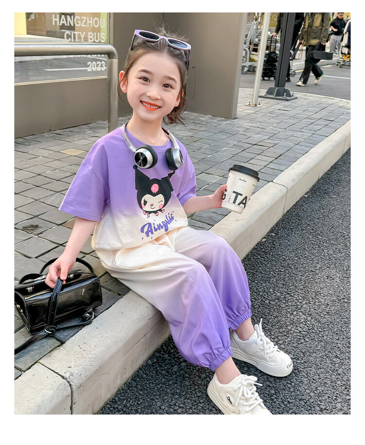 어린이 여름 반팔 바지 새로운 인터넷-유명한 두 조각 귀여운 서양식 느슨한 그라디언트 유행 어린이 캐주얼 세트스토어 가기