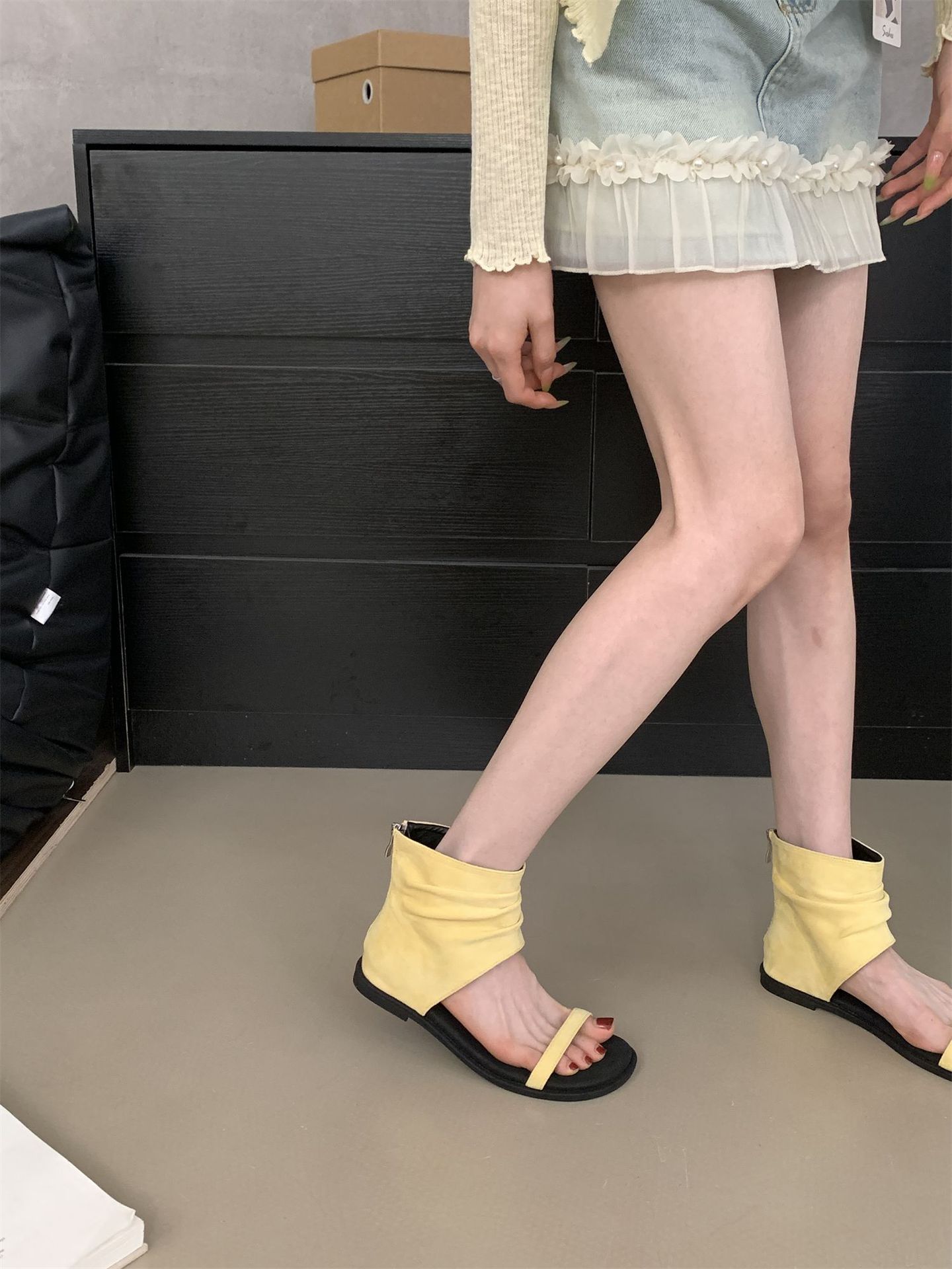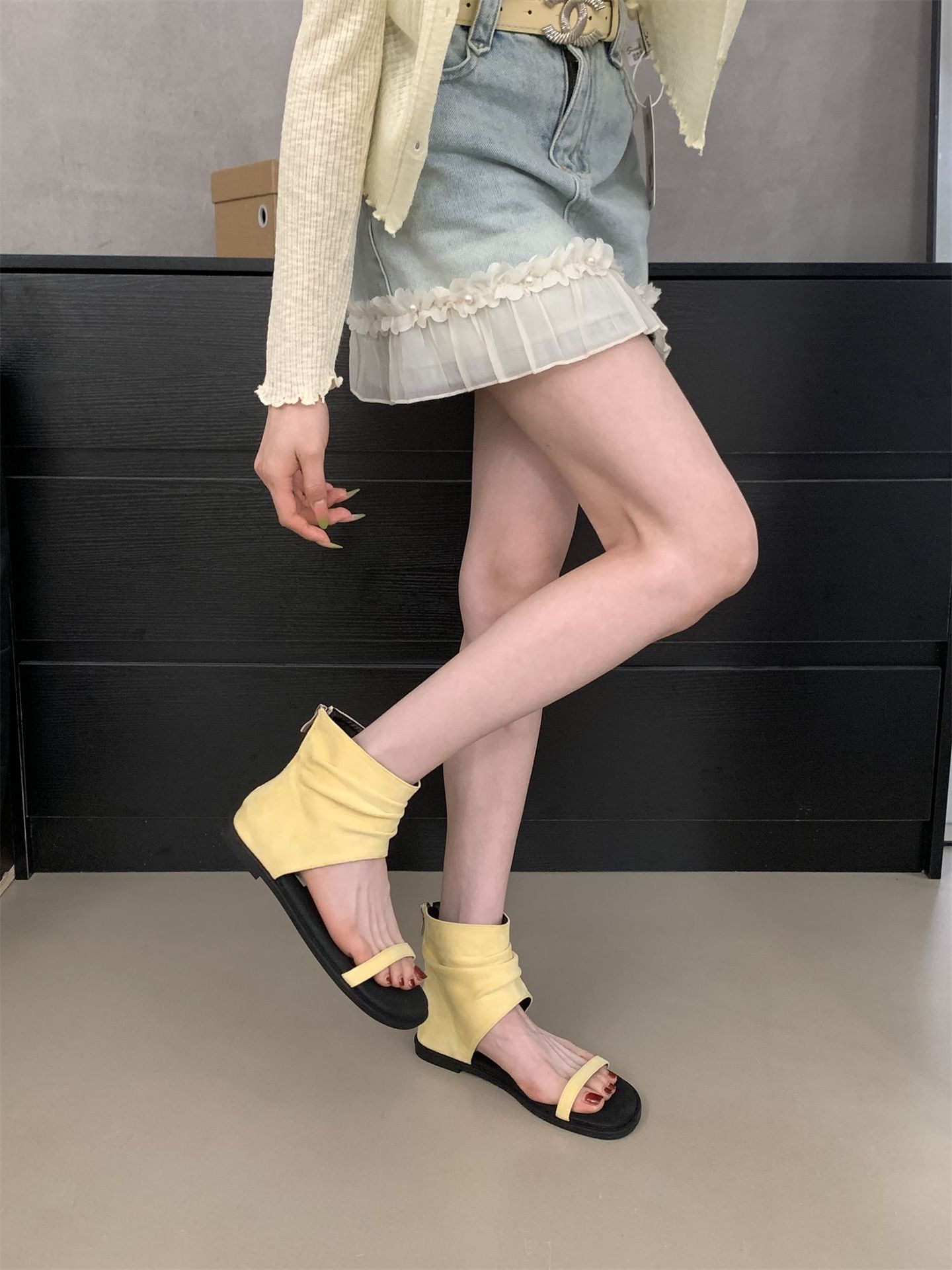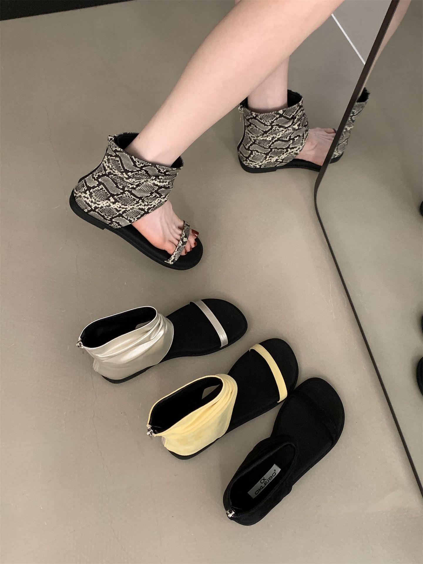 라운드 헤드 두꺼운 힐 샌들 ~ 2025 년 여름 새 오픈 발가락 뒷 지퍼 저발 한국식 하이 탑 발목 부츠