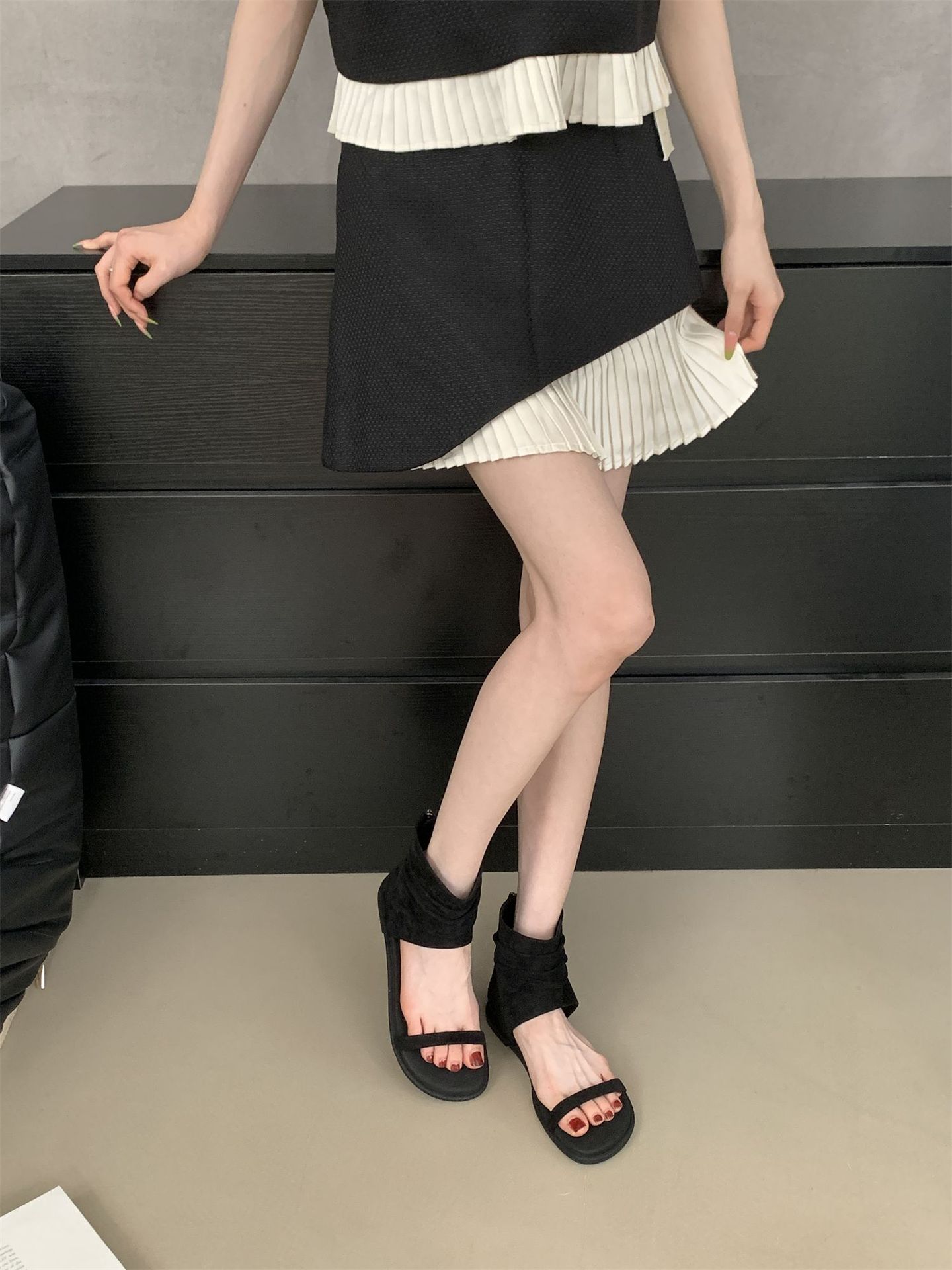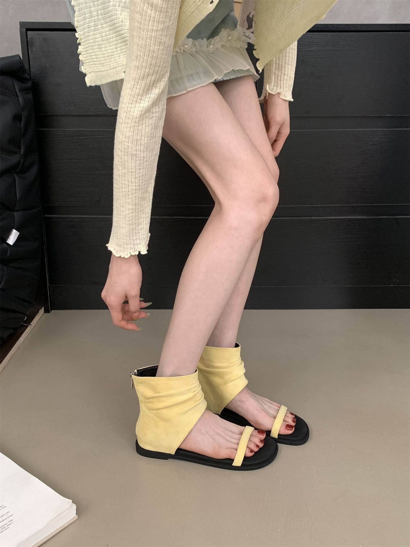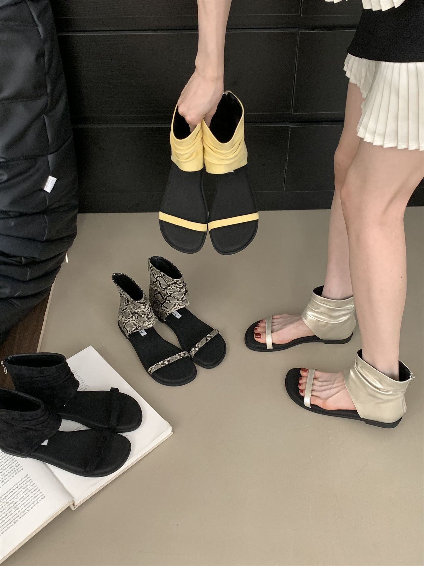 라운드 헤드 두꺼운 힐 샌들 ~ 2025 년 여름 새 오픈 발가락 뒷 지퍼 저발 한국식 하이 탑 발목 부츠