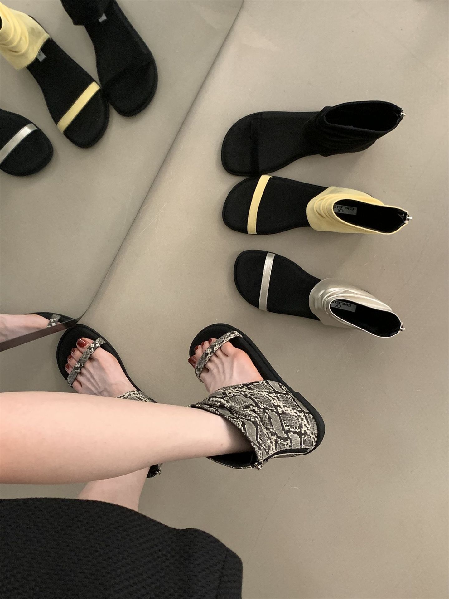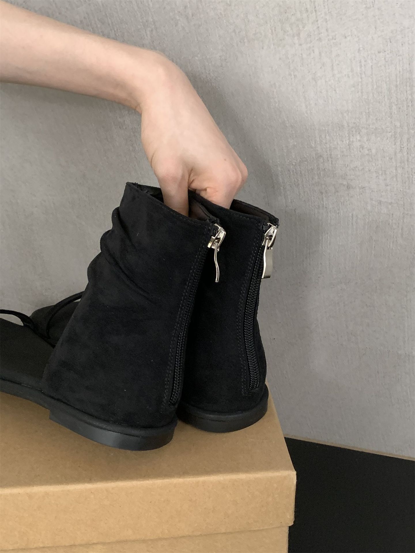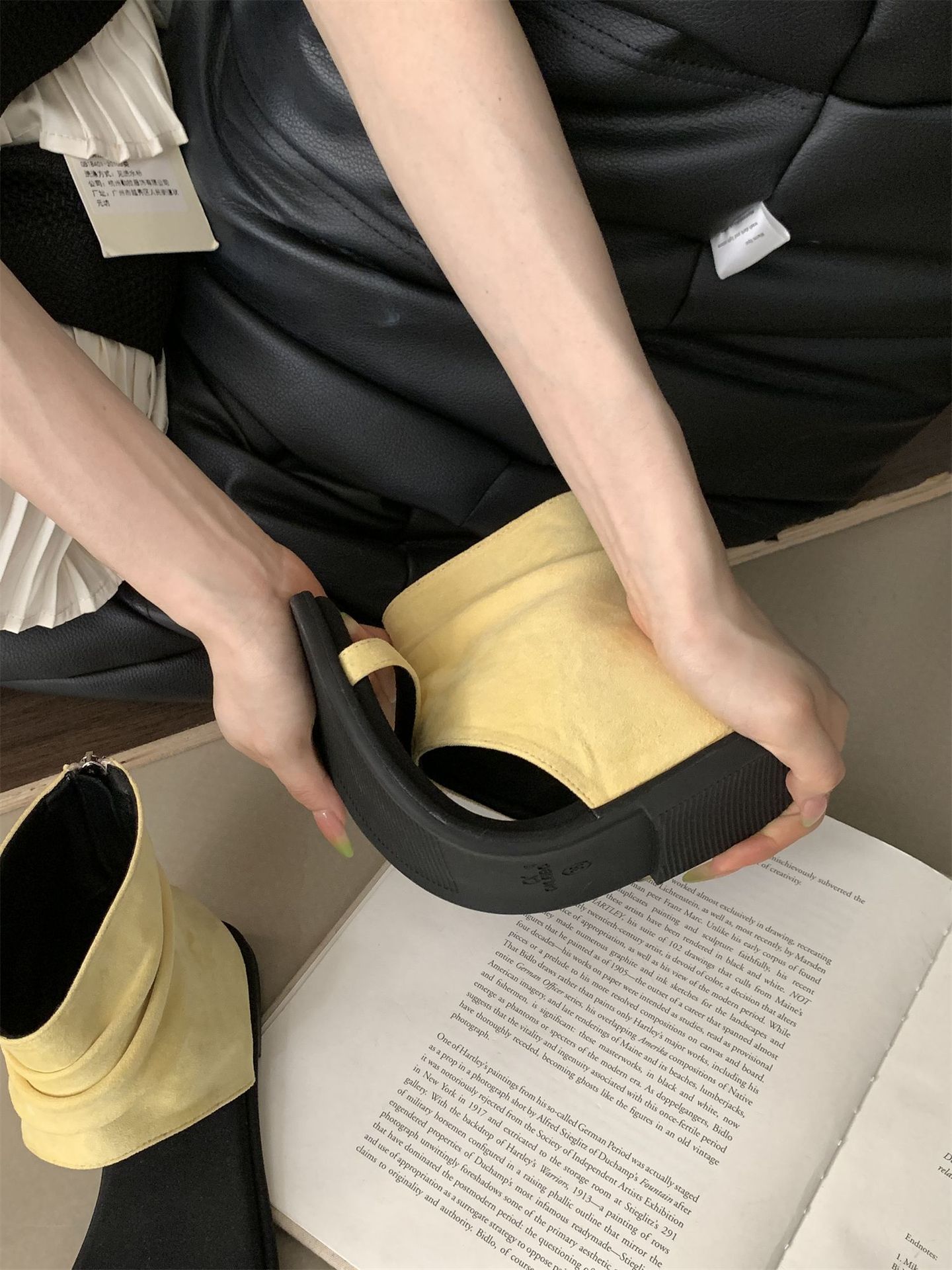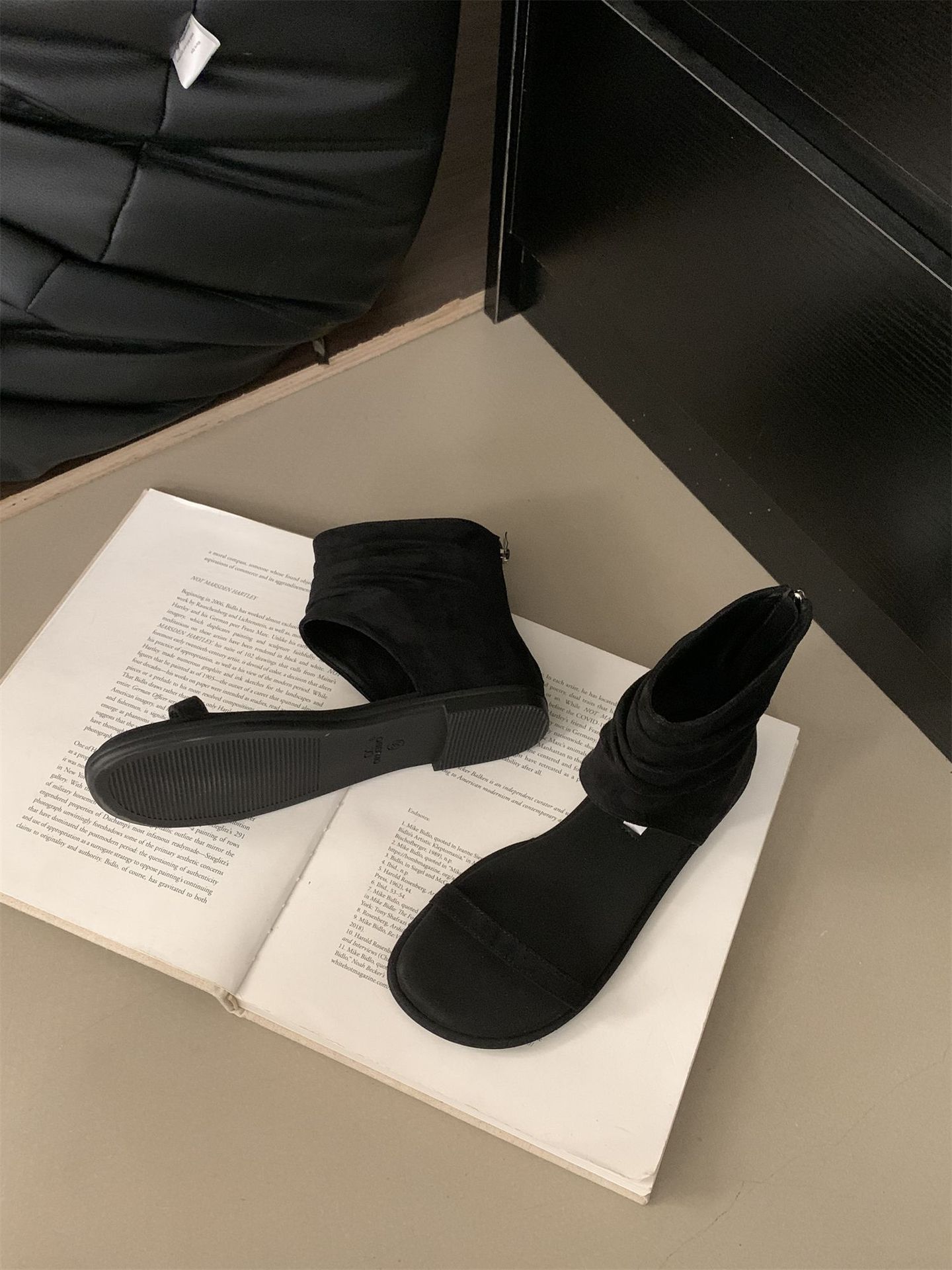 라운드 헤드 두꺼운 힐 샌들 ~ 2025 년 여름 새 오픈 발가락 뒷 지퍼 저발 한국식 하이 탑 발목 부츠스토어 가기