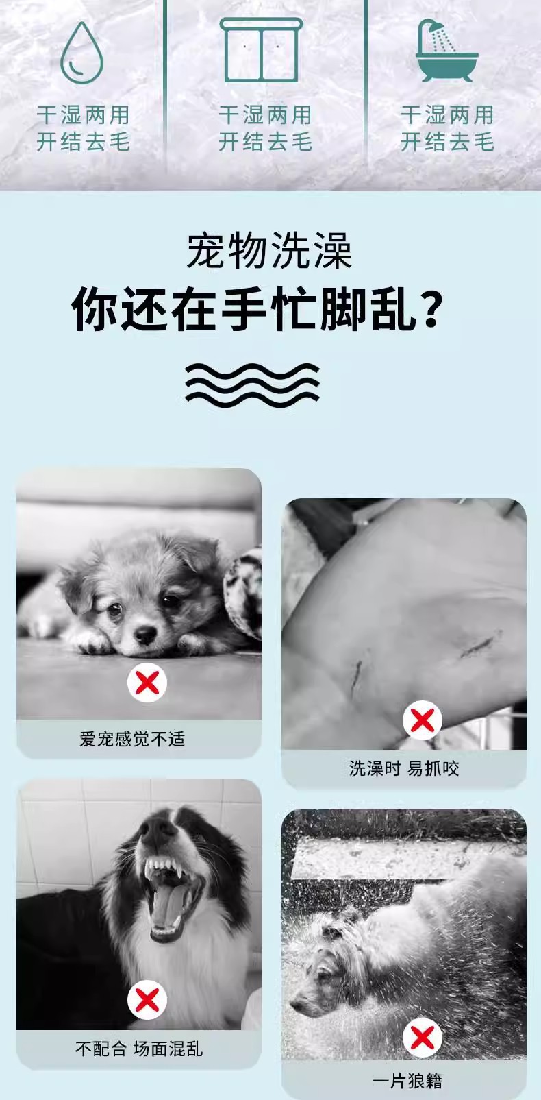 애완동물 목욕장갑, 개와 고양이 목욕용품, 테디 골든 리트리버 목욕 및 목욕 브러쉬, 길어진 긁힘 방지 및 물림 방지