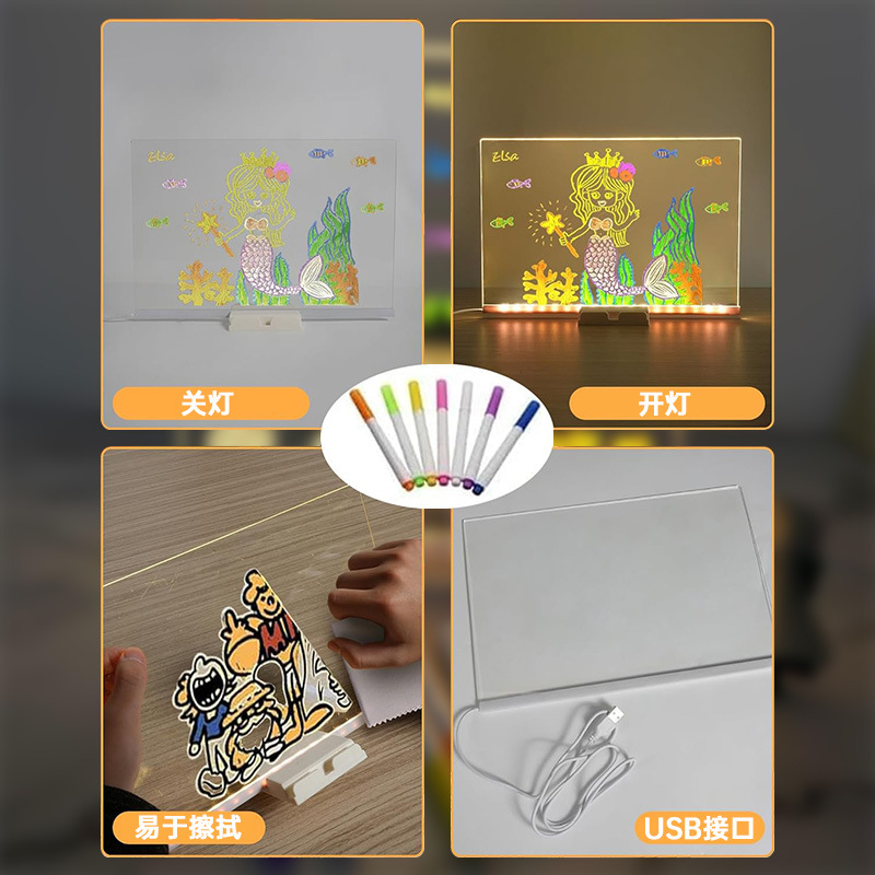 어린이 빛나는 드로잉 보드 브래킷 지울 수있는 diy 낙서 보드 led 빛나는 글쓰기 보드 메시지 드로잉 보드 이젤 6스토어 가기