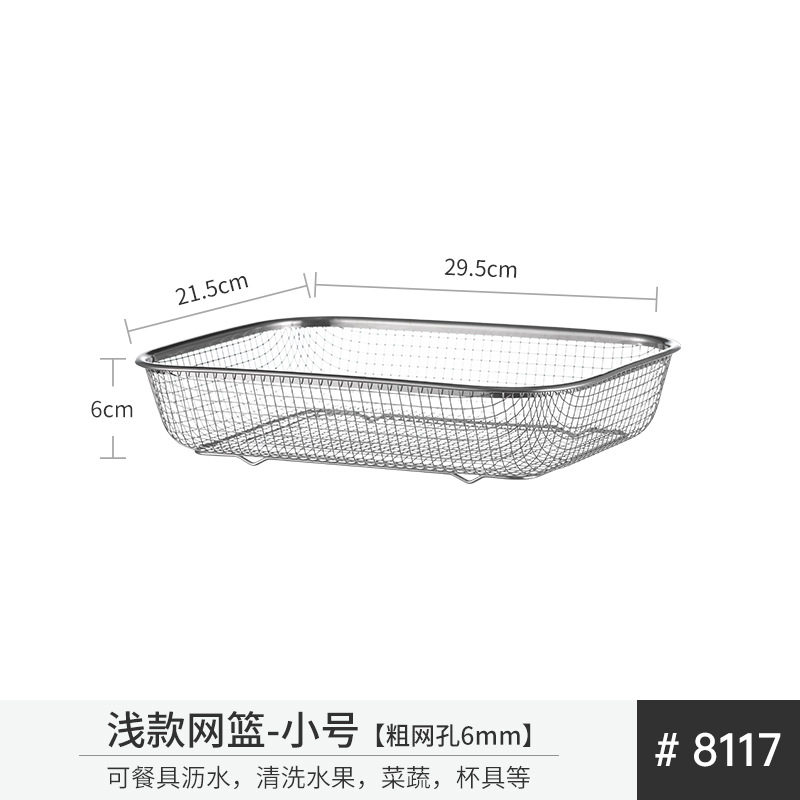 • 사각 메쉬 바스켓 - 대형 롱 스타일 [미세한 구멍] 1개 201 스테인레스 스틸