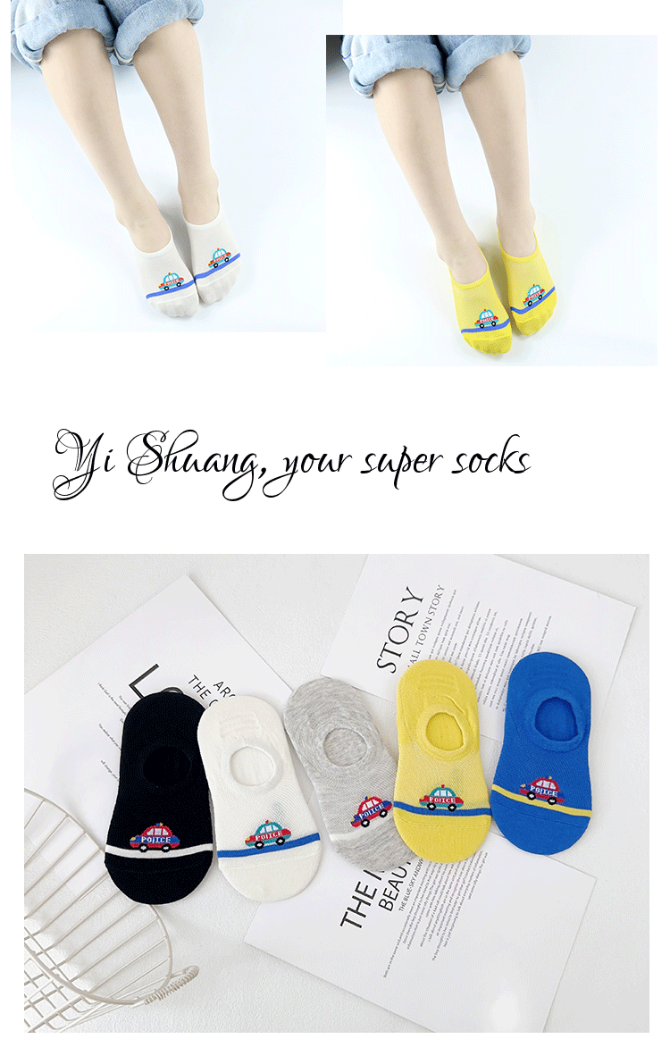 Yishuangshuang 어린이 양말 여름 메쉬 통기성 만화 자동차 보트 양말 빗질면 소년 얕은 입 보이지 않는 양말스토어 가기