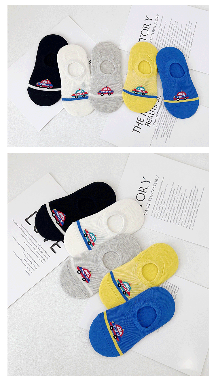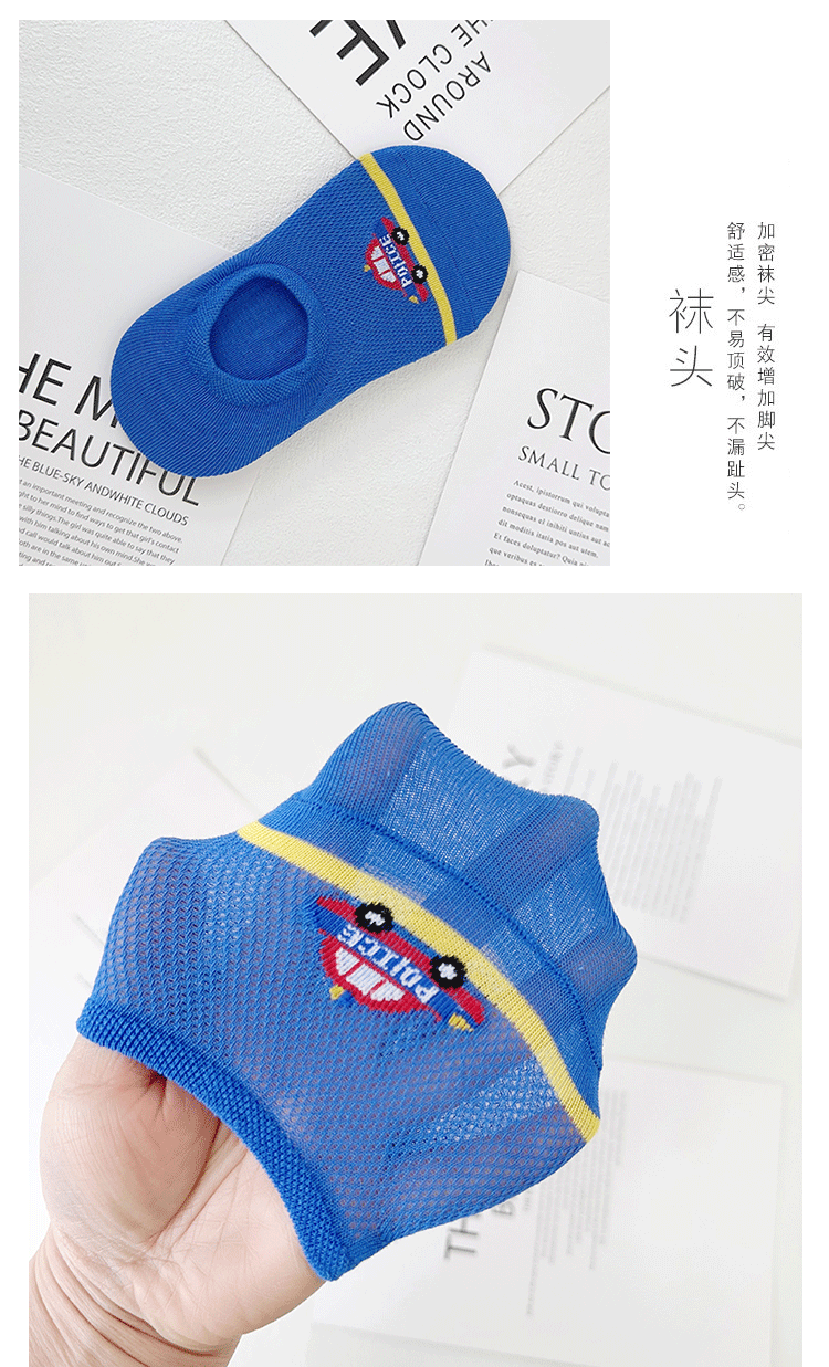 Yishuangshuang 어린이 양말 여름 메쉬 통기성 만화 자동차 보트 양말 빗질면 소년 얕은 입 보이지 않는 양말
