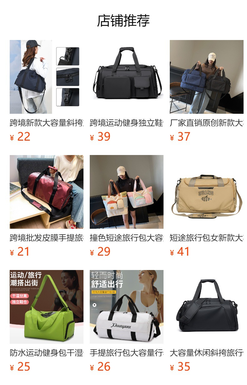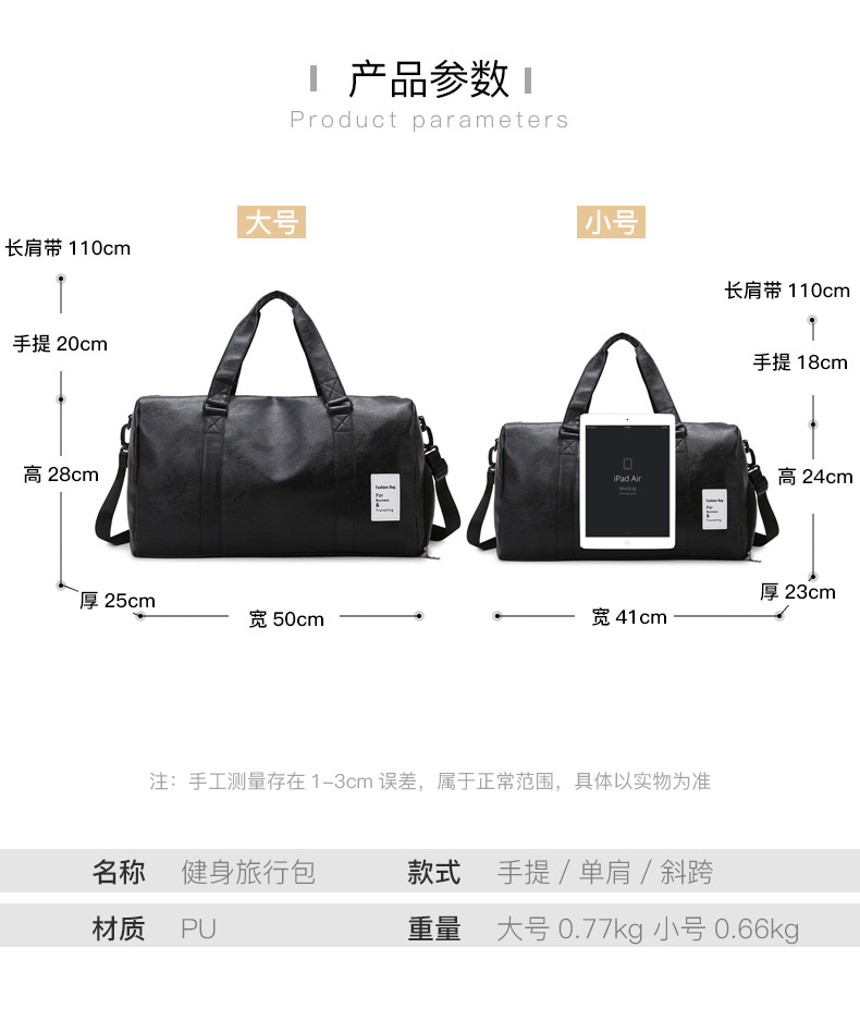 공장 직접 판매 다기능 건식 및 습식 분리 독립 신발 수납 공간 피트니스 가방 단거리 여행 휴대용 크로스 바디 백 여행 가방스토어 가기
