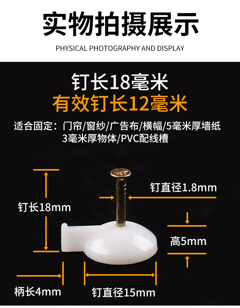 재고 광고 버클 네일 벽지 고정 손톱 높은 경도 시멘트 네일 KT 보드 잉크젯 천 포스터 고정 큰 머리 강철 못