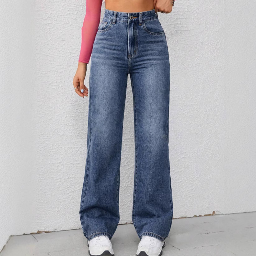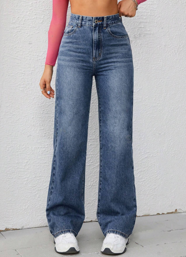 유럽과 미국의 국경 간 2025년 현물 대외 무역 공급 여성용 워싱 와이드 레그 루즈 데님 바지스토어 가기
