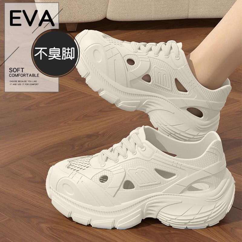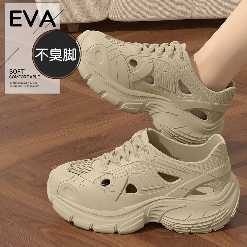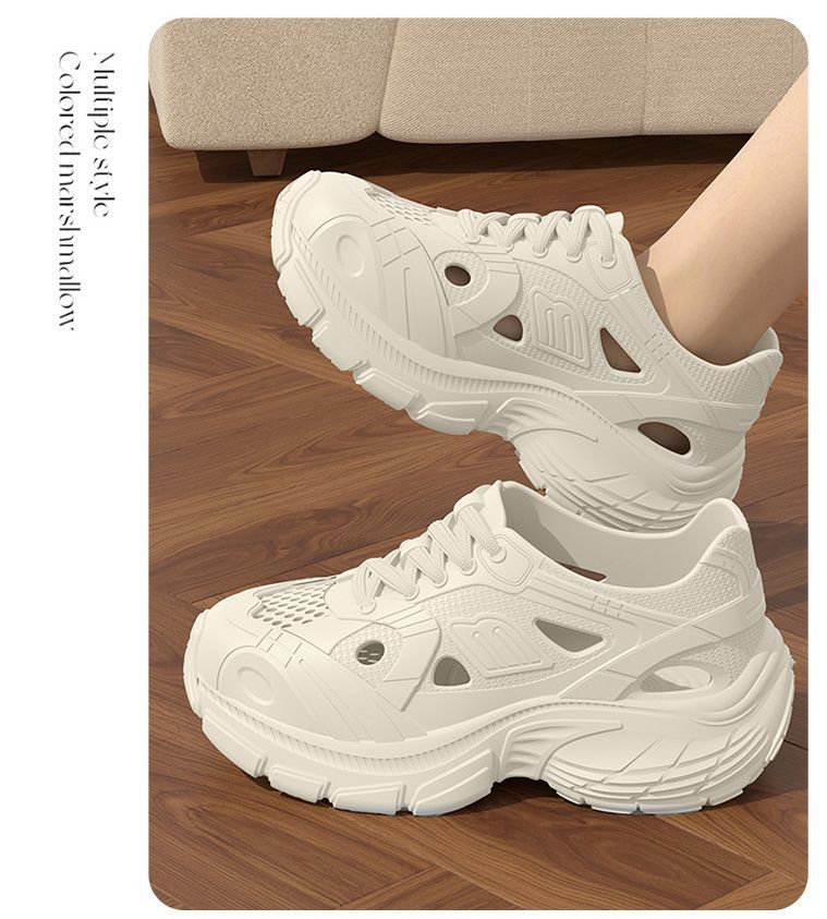 두꺼운 밑창 구멍 신발 여성의 2025 년 새로운 여름 높이 증가 스포츠 아빠 샌들 야외 하이킹 신발스토어 가기