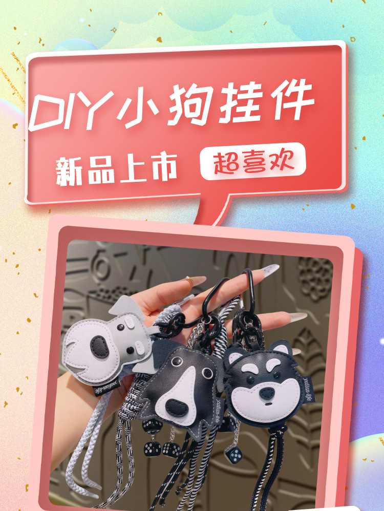 원래 DIY 가죽 키 체인 만화 강아지 인형 펜던트 도매 창조적 인 배낭 절묘한 펜던트 작은 보석스토어 가기