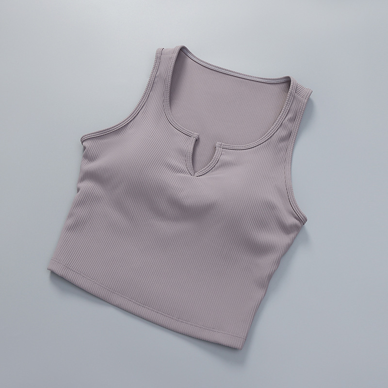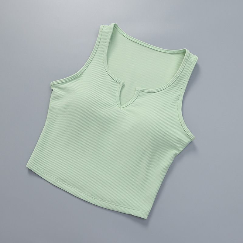 스포츠 속옷 여성용 고정 가슴 패드 충격 방지 러닝 요가 세트 조끼 착용 피트니스 브래지어 V-넥 민소매 탑