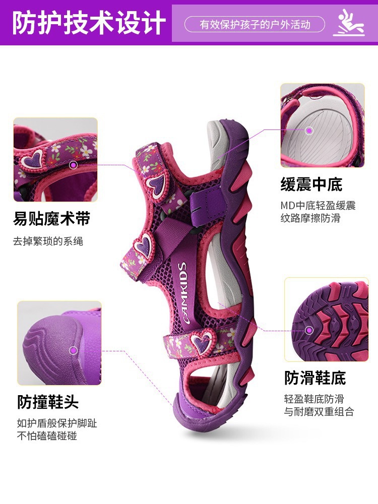 엄선된 CAMKIDS 여아 발가락 샌들 2025 여름 부드러운 밑창 미끄럼 방지 달리기 및 얼룩 방지 어린이 해변 신발