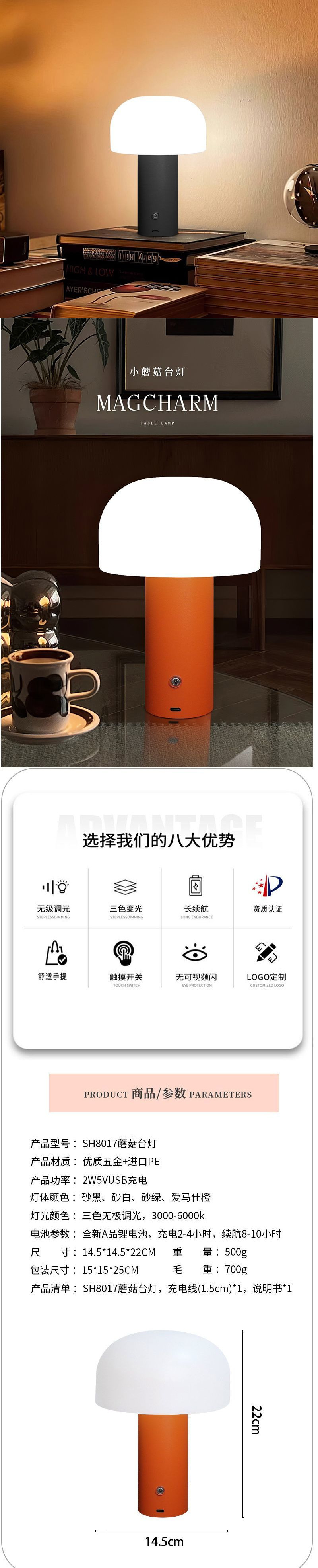 LED 버섯 창조적 인 테이블 램프 충전 USB 분위기 장식 터치 디밍 스터디 침실 침실 북유럽 야간 조명