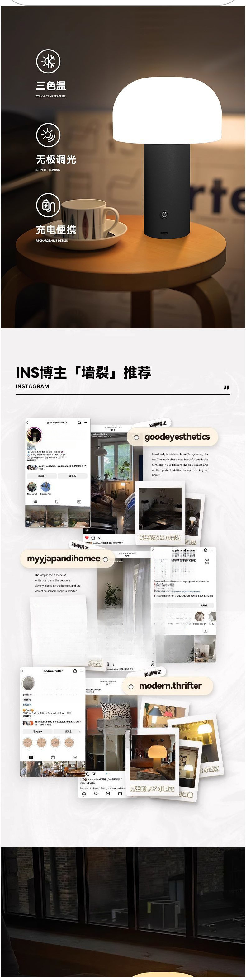 LED 버섯 창조적 인 테이블 램프 충전 USB 분위기 장식 터치 디밍 스터디 침실 침실 북유럽 야간 조명스토어 가기