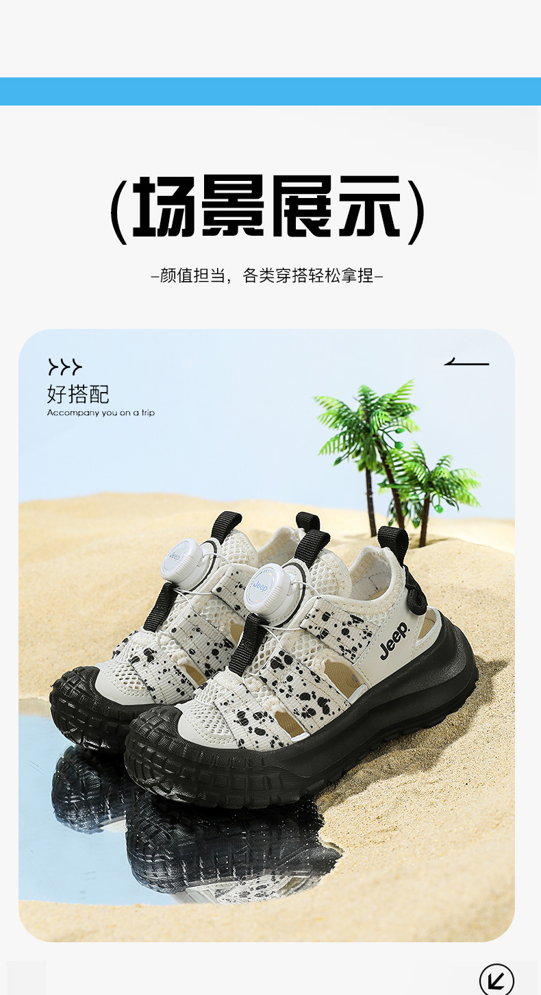 Jeep 소년 샌들 Baotou 미끄럼 방지 와타리 해변 신발 소녀 2025 여름 새로운 야외 어린이 강 신발