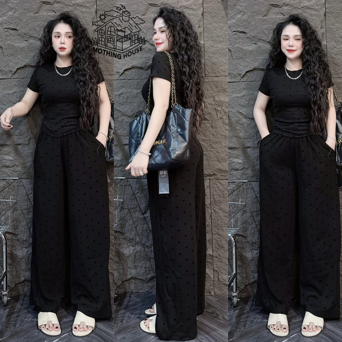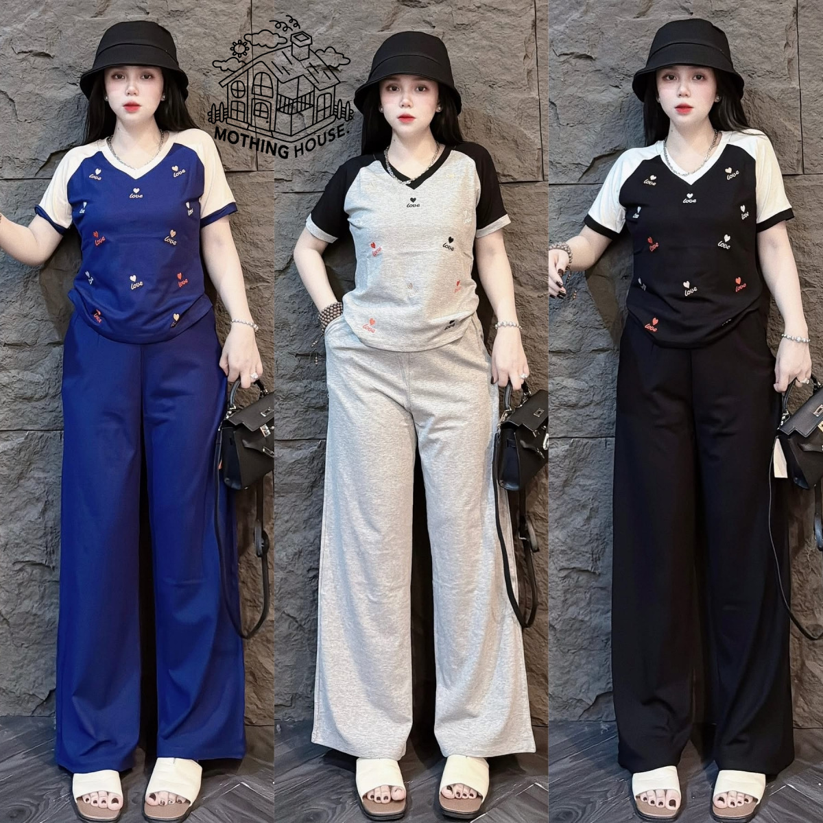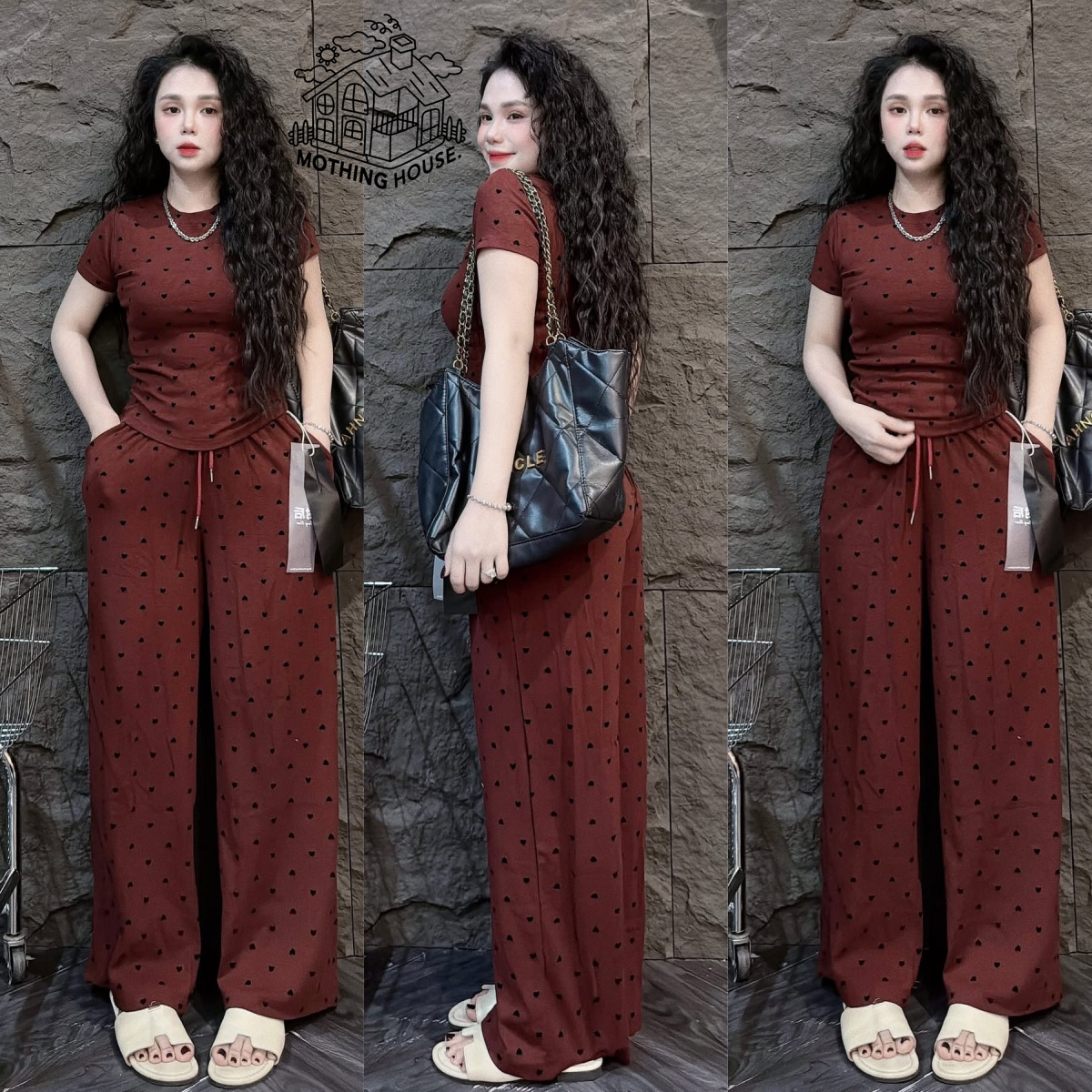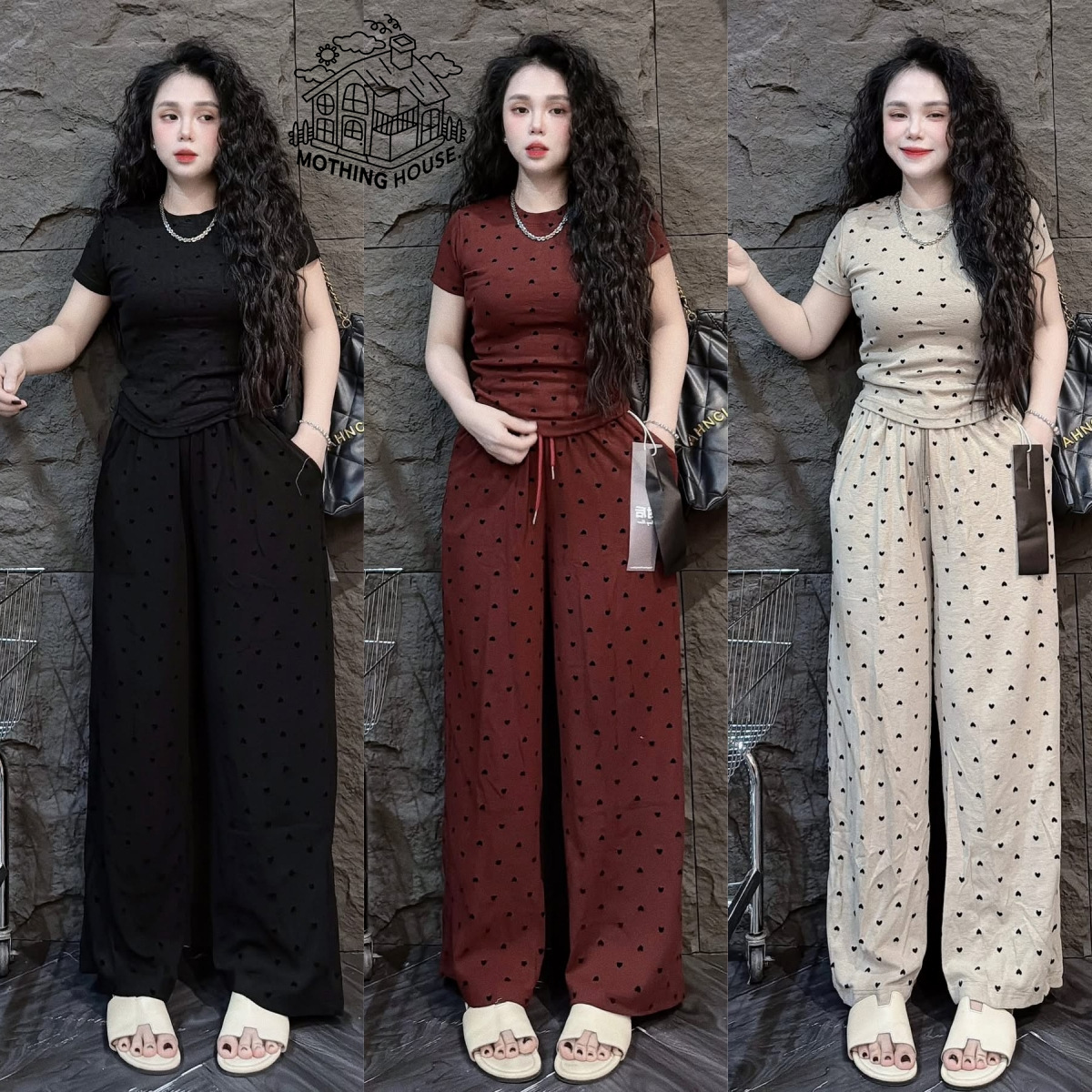대외 무역 여성 패션 세트 여름 새로운 슬림 핏 사랑 인쇄 반팔 슬리밍 와이드 레그 팬츠 캐주얼 투피스 세트스토어 가기