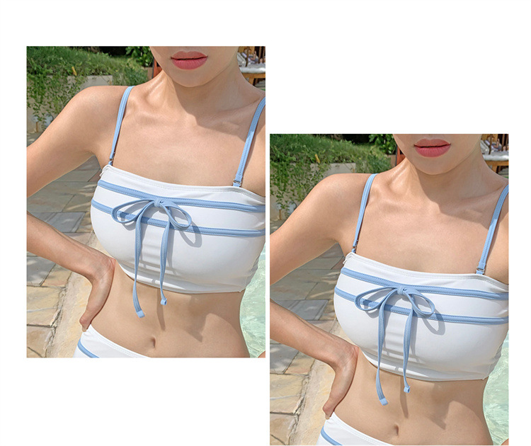 새로운 달콤한 소녀 나비 넥타이 튜브 탑 푸시 업 하이 웨이스트 스플릿 수영복 소녀 간단한 배 커버 보수적 인 온천 수영복