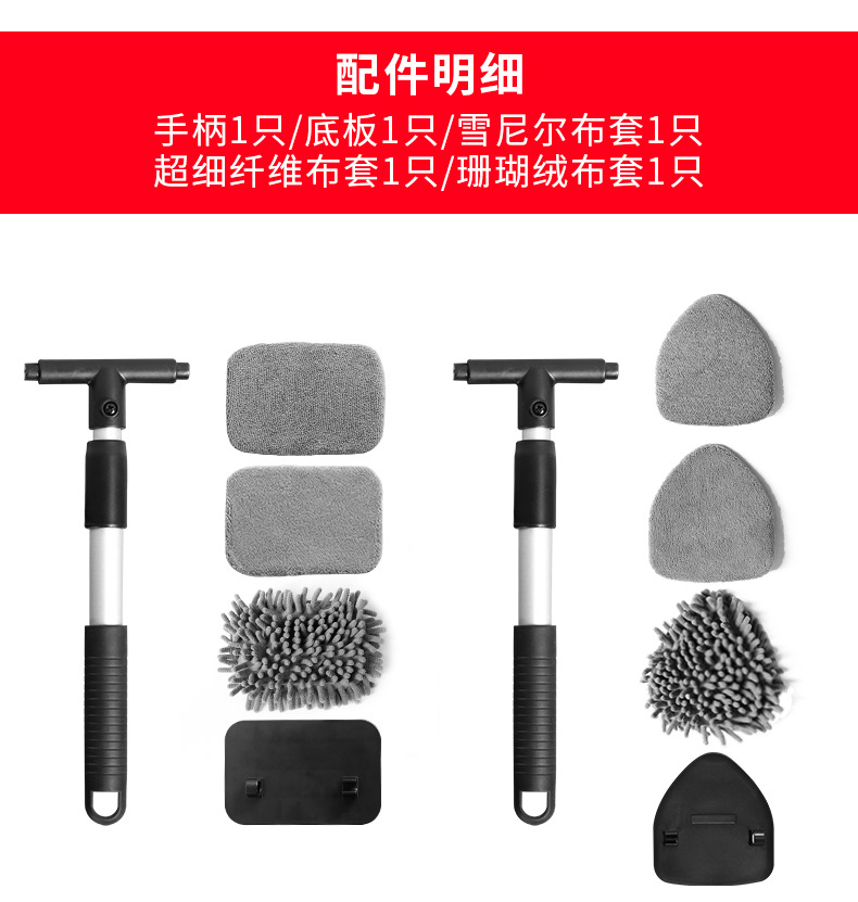 3、标配雪尼尔、珊瑚绒、超细纤维三种布套各1个,适合各种擦车洗车除雾场景。