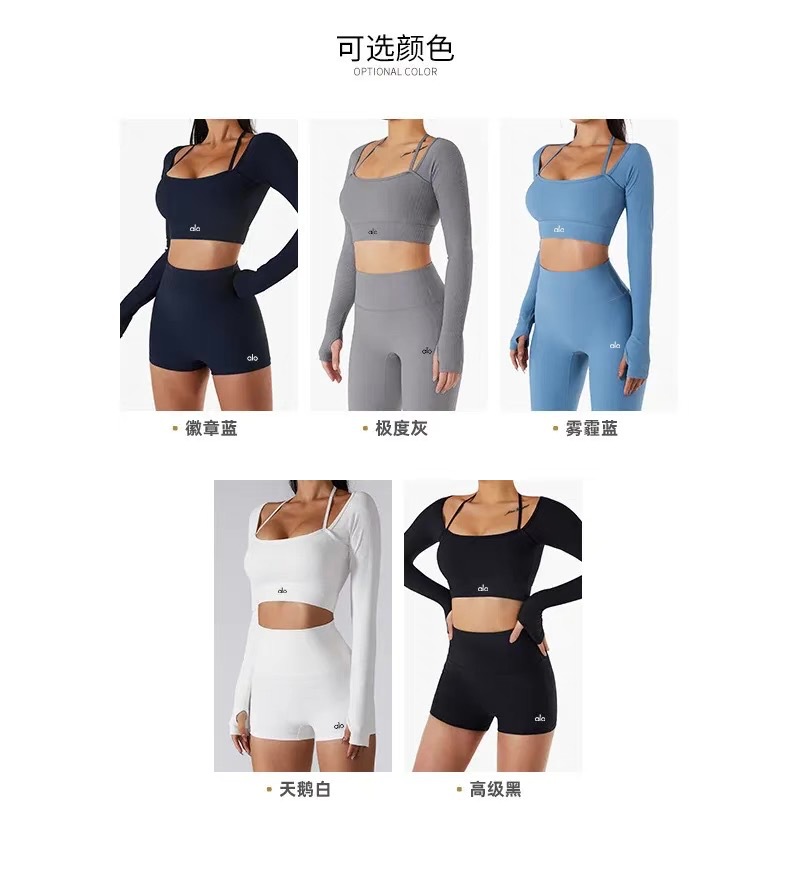 알로 요가 의류 긴팔 티셔츠 여성용 벨트 가슴 패드 스레드 스포츠 빠른 건조 최고 피트니스 세트 높은 허리 외투 반바지스토어 가기