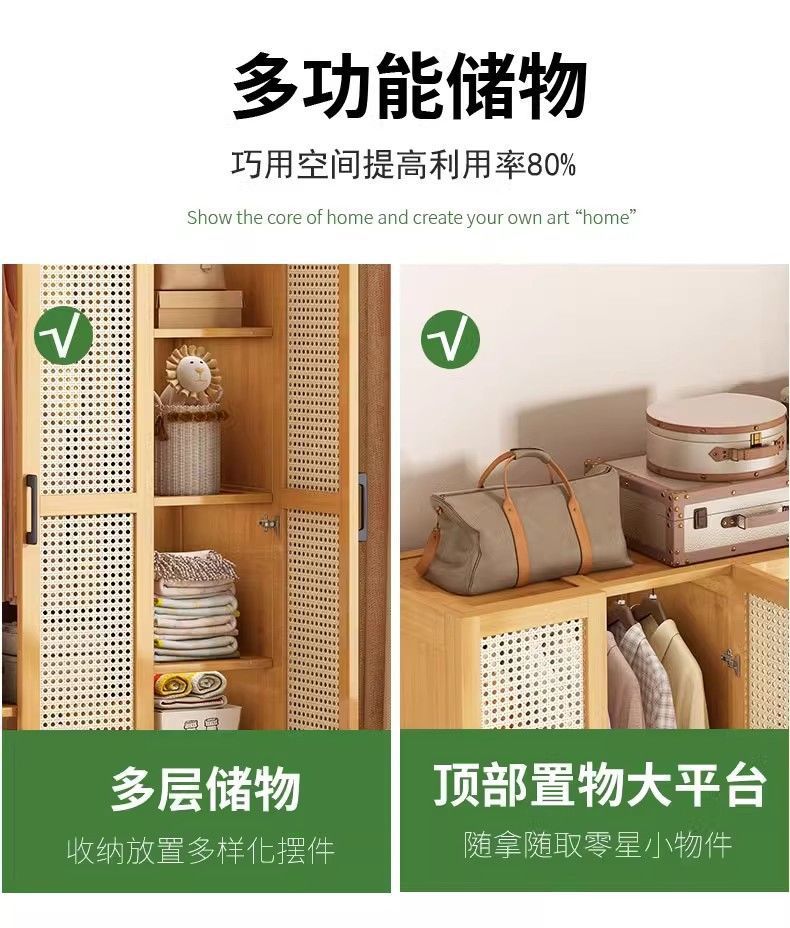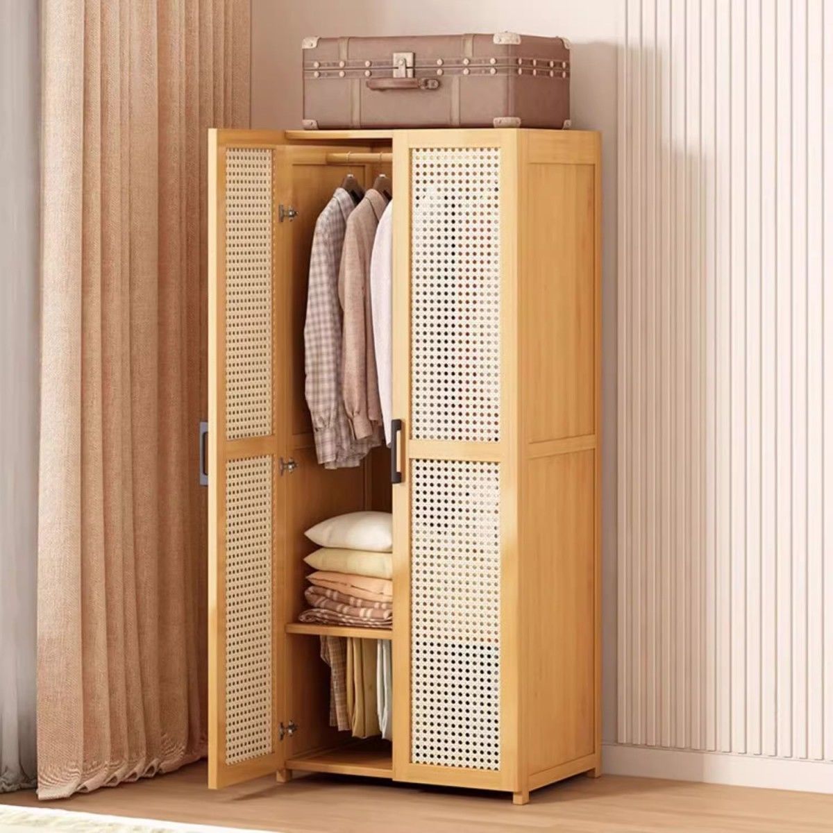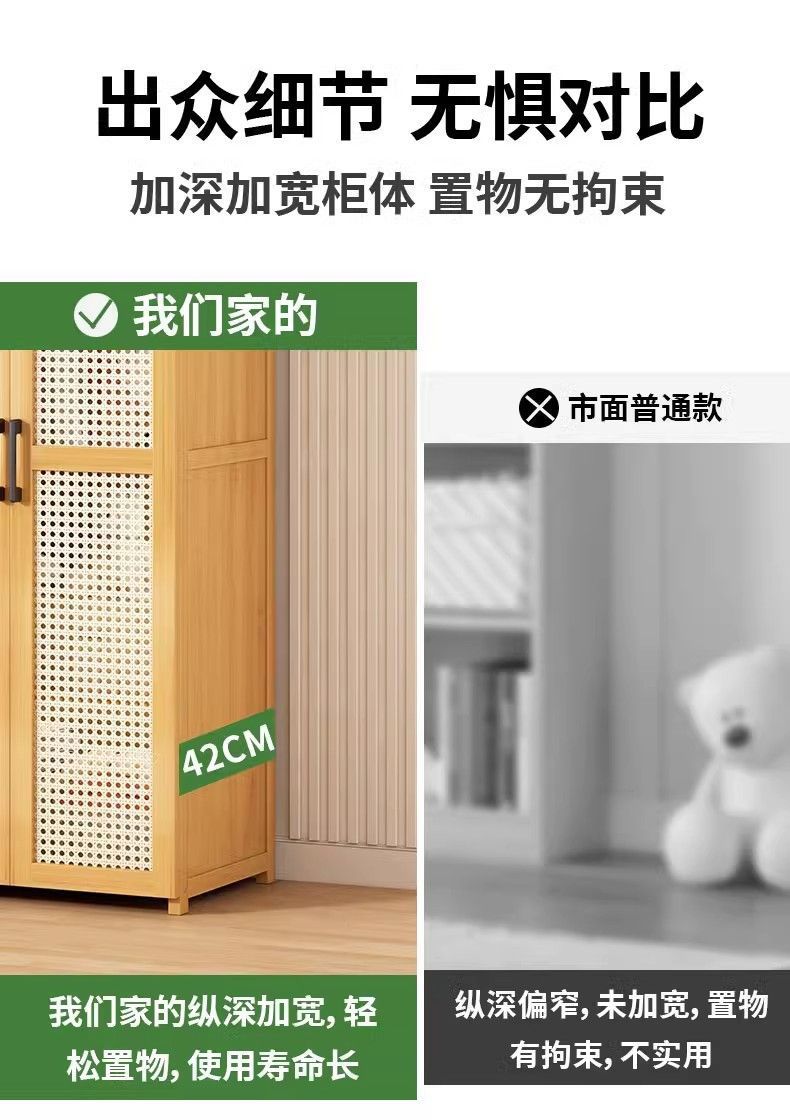• 바지걸이 스타일 원목 색상 60CM + 플라스틱 등나무 표면(문 2개 포함)