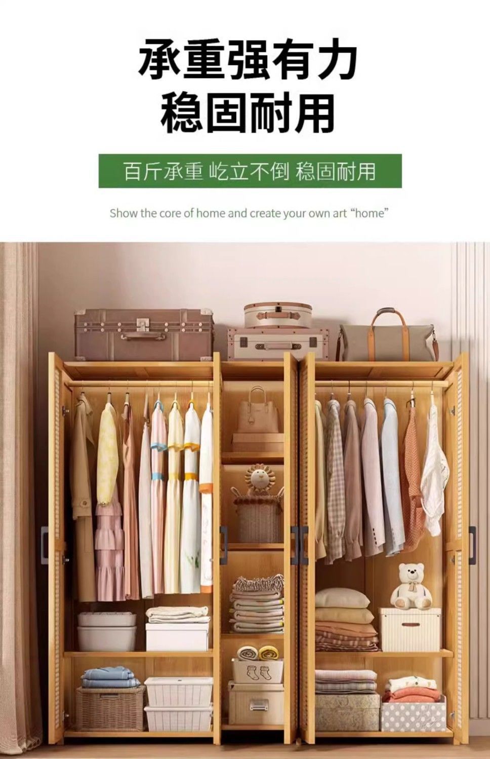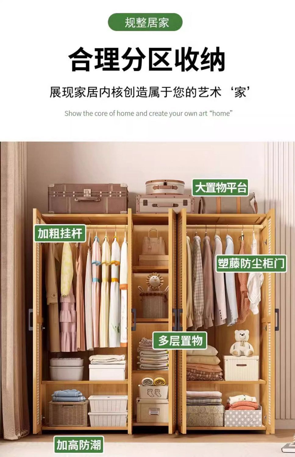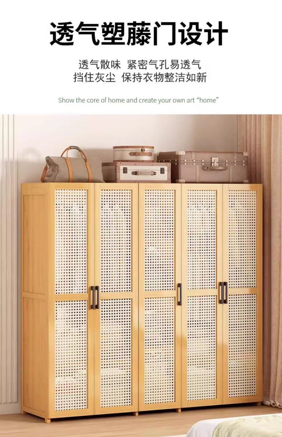 • 바지걸이 스타일 원목 색상 60CM + 플라스틱 등나무 표면(문 2개 포함)
