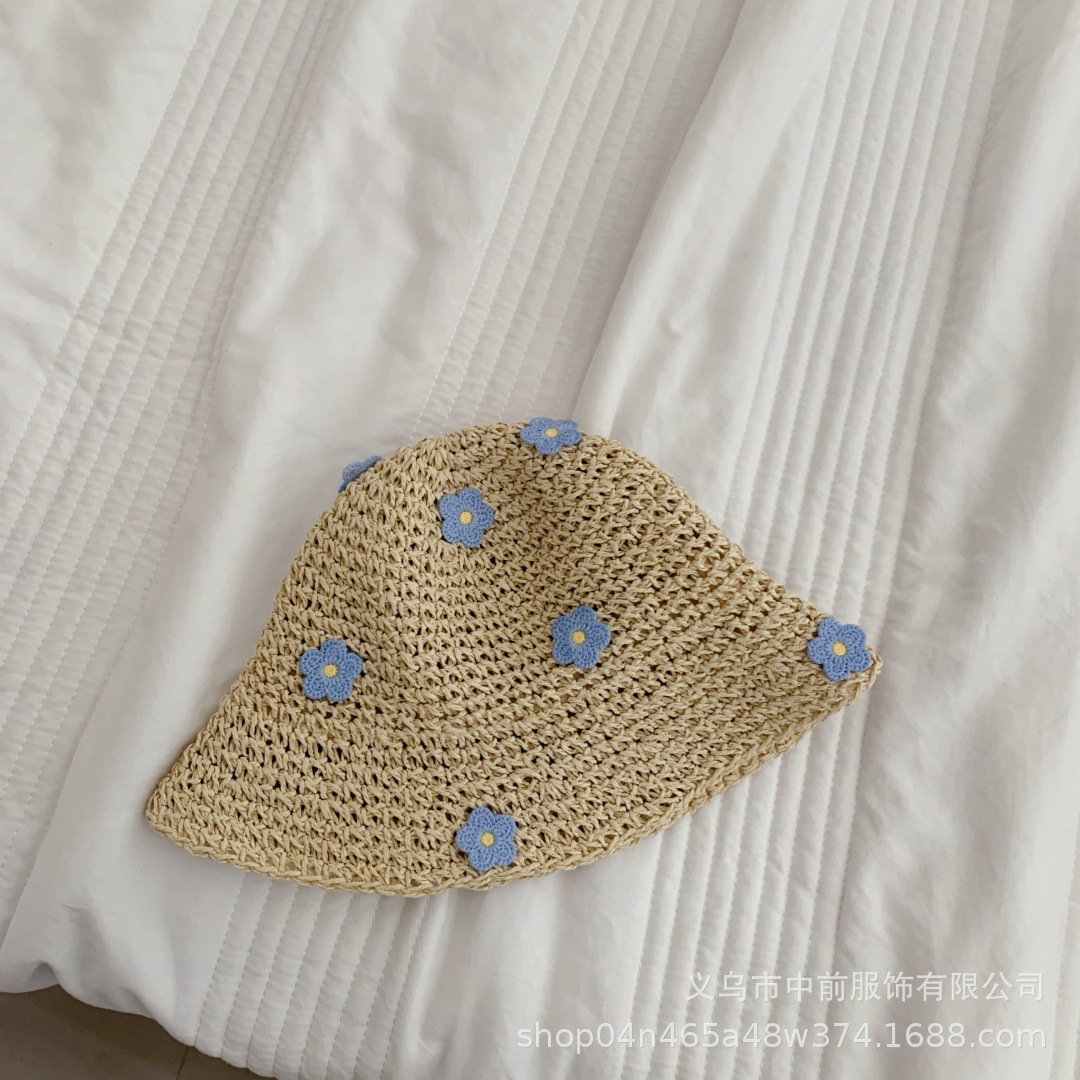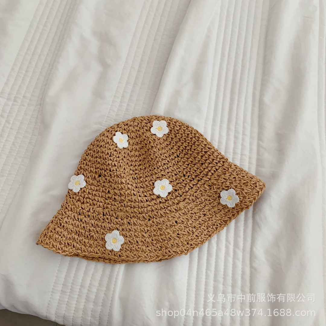 작은 신선한 어린이 어부 모자 달콤한 꽃 태양 보호 모자 여름 소녀 아기 여행 부모-자식 밀짚 모자