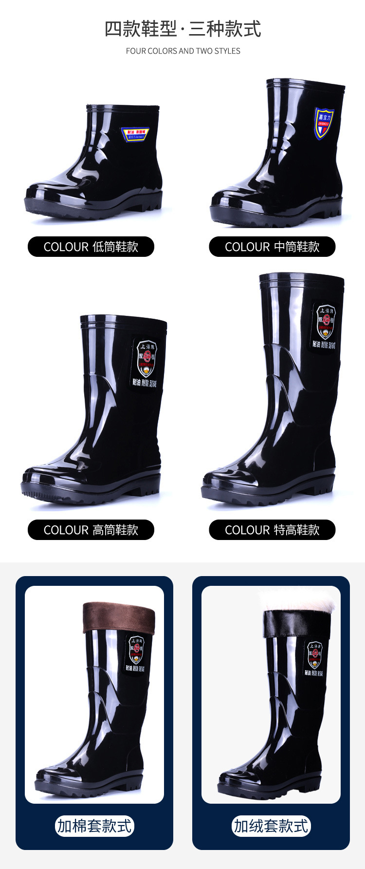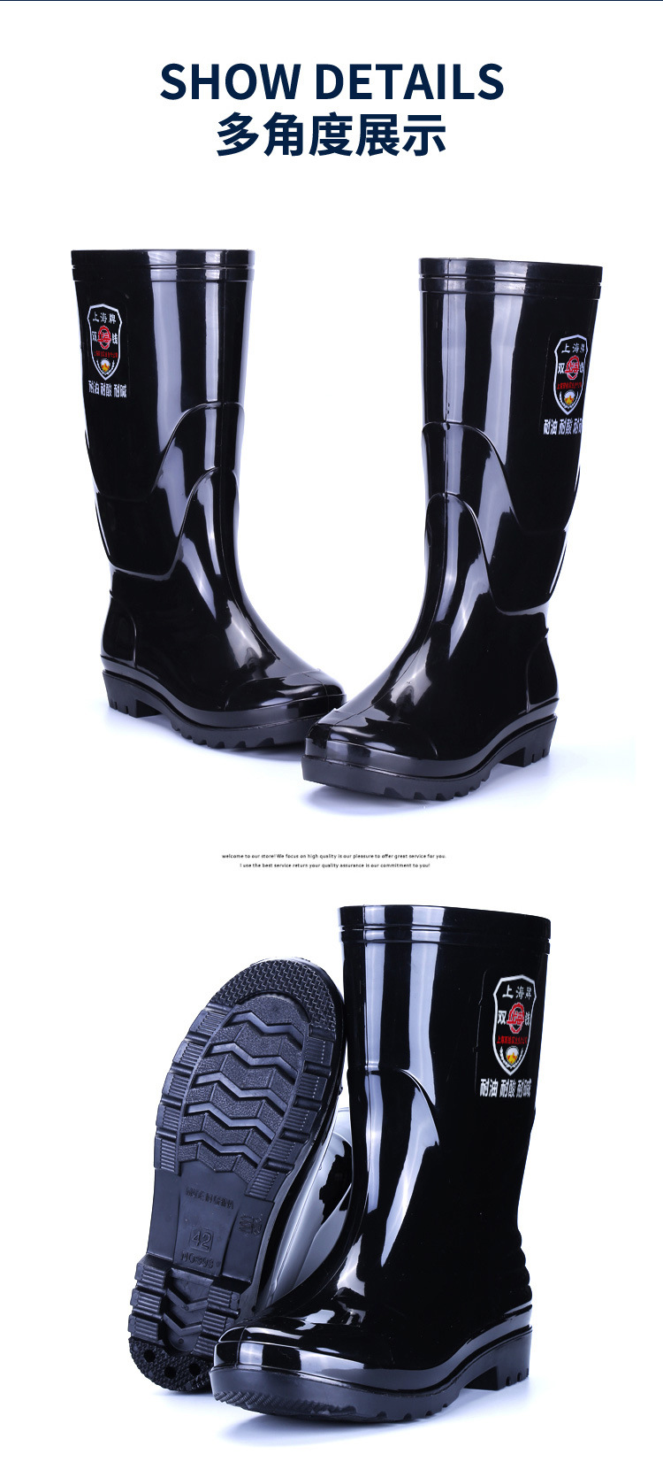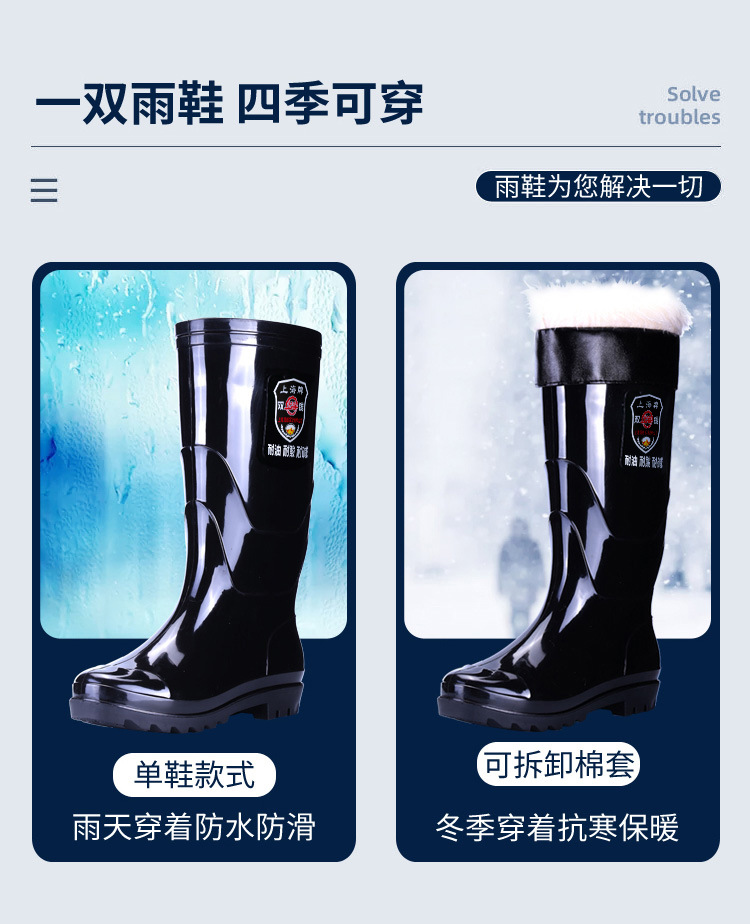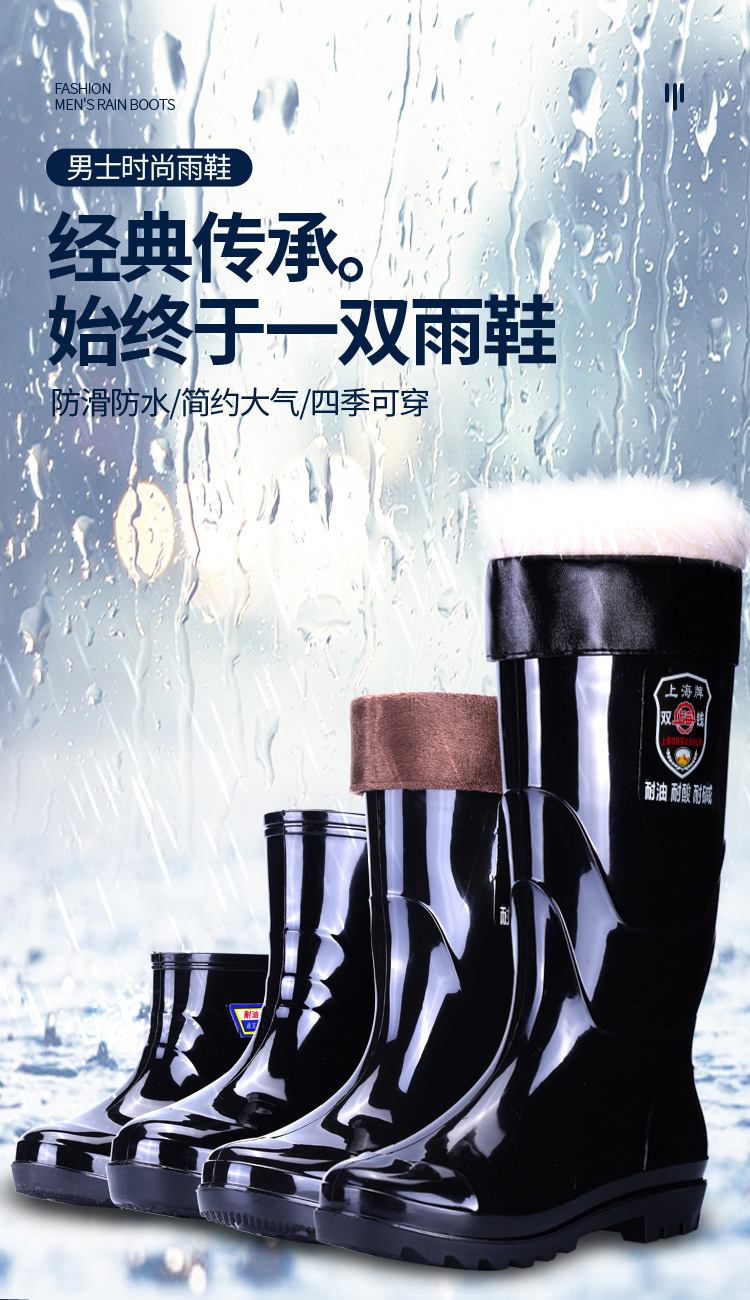 상하이 브랜드 노동 보호용 레인슈즈, 건설 현장 방수 레인부츠, 남성용 미끄럼 방지 내마모성 고무신, 두꺼운 워터슈즈 도매 및 배송스토어 가기